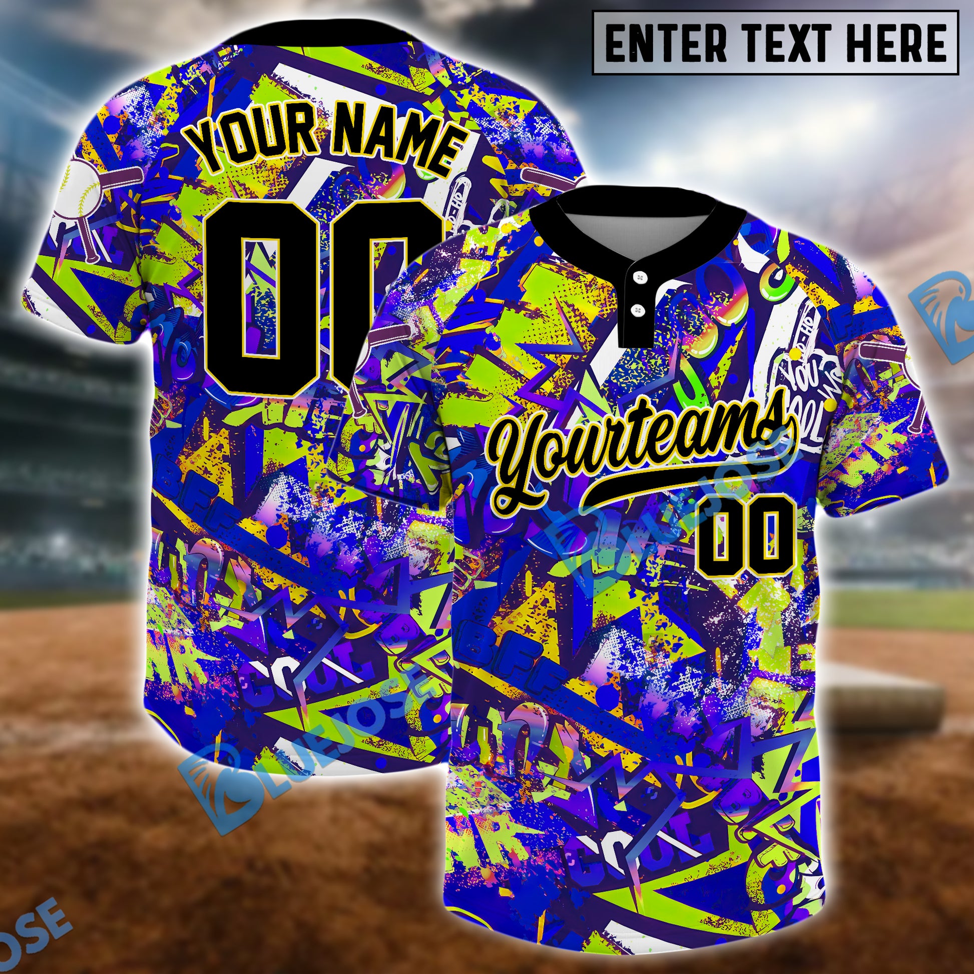BlueJose Neon Graffiti Softball Jersey, Custom Name & Team Number 3D Shirt (4 Colors)