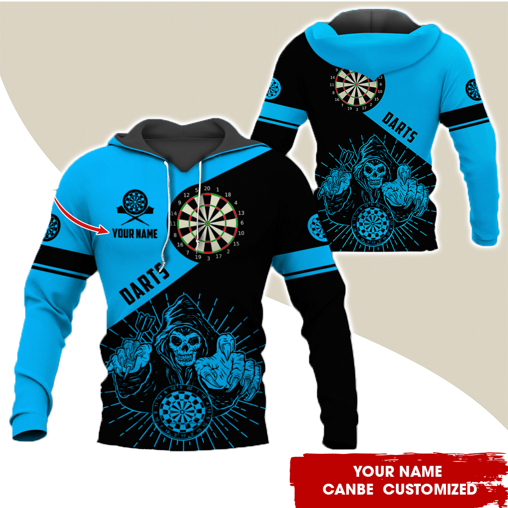 BlueJose Skeleton Playing Darts Pattern Customized Name Hoodie