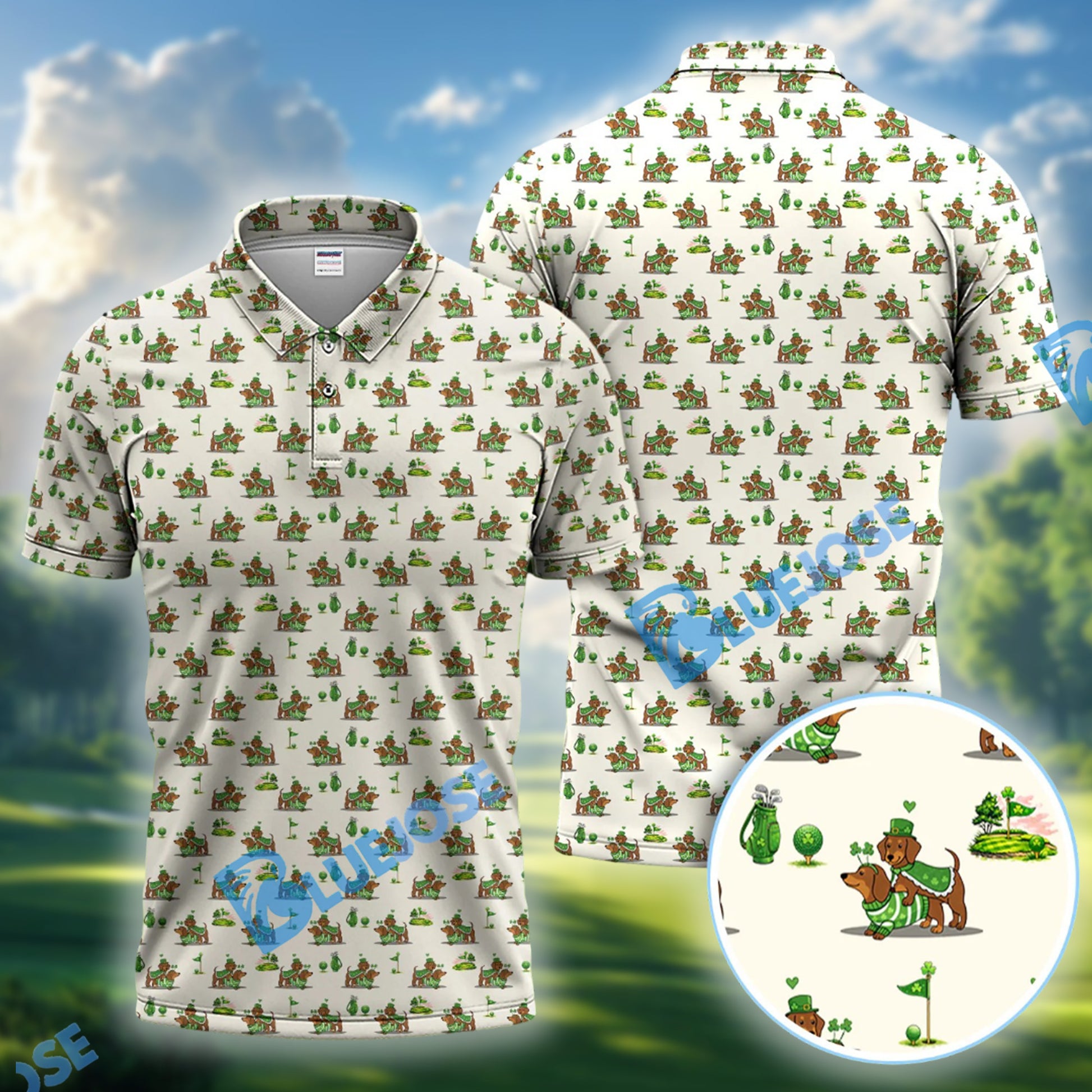 BlueJose St Patrick’s Day Dachshund Patrick Golf Shirt, Wiener Dog Golf Polos For Men, Golf Gift For Golfer