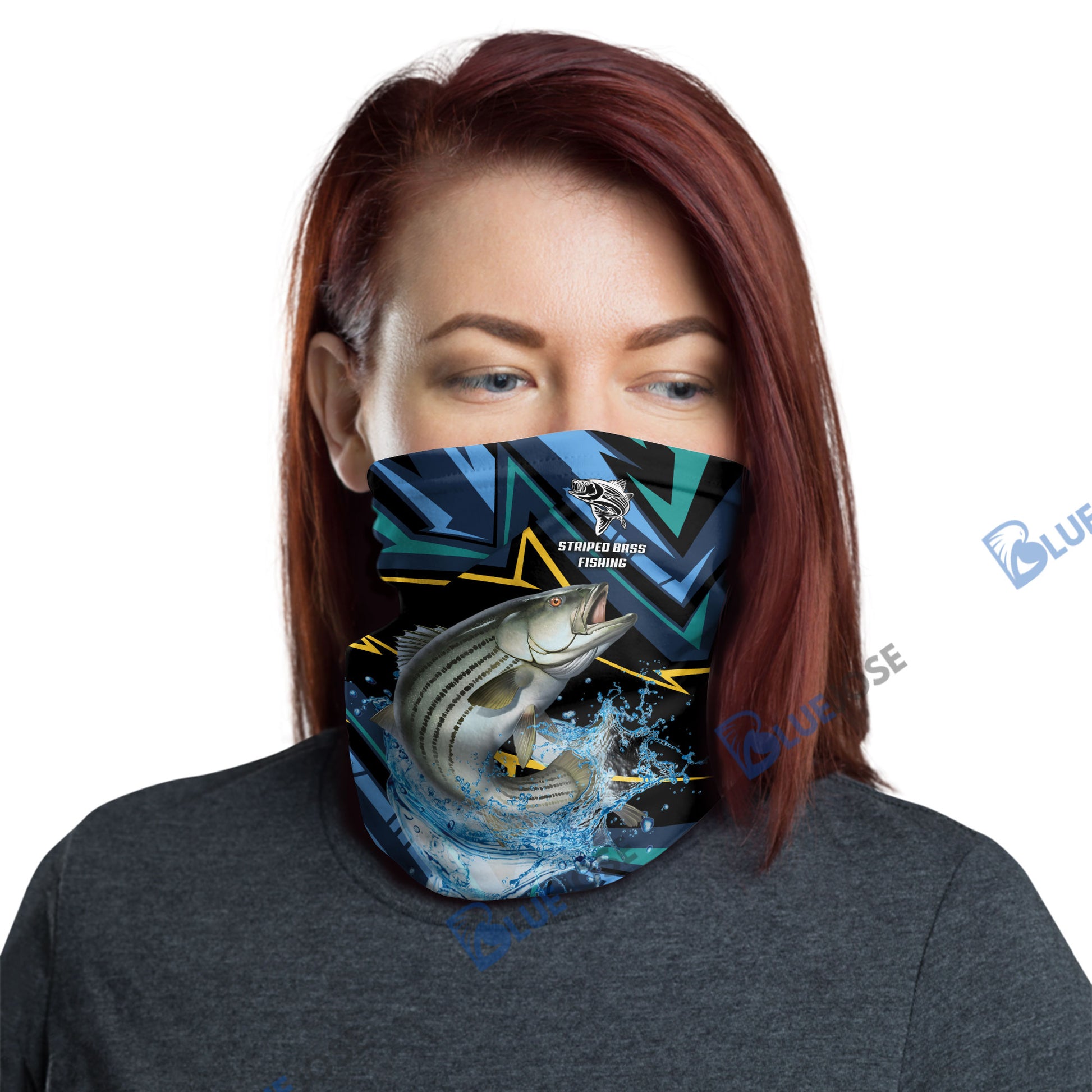 BlueJose Striped Bass Fishing Lightning Pattern Sport Neck Gaiter