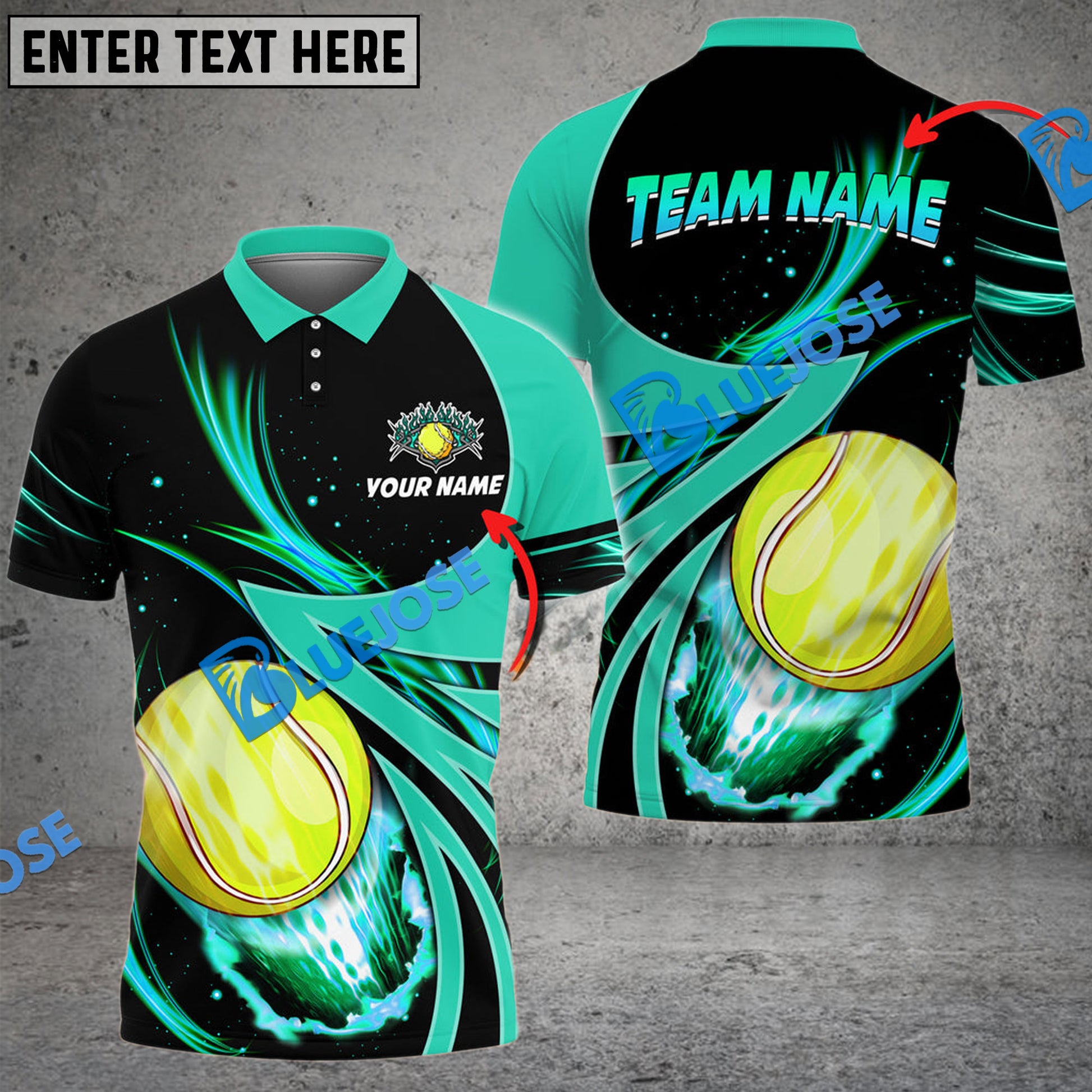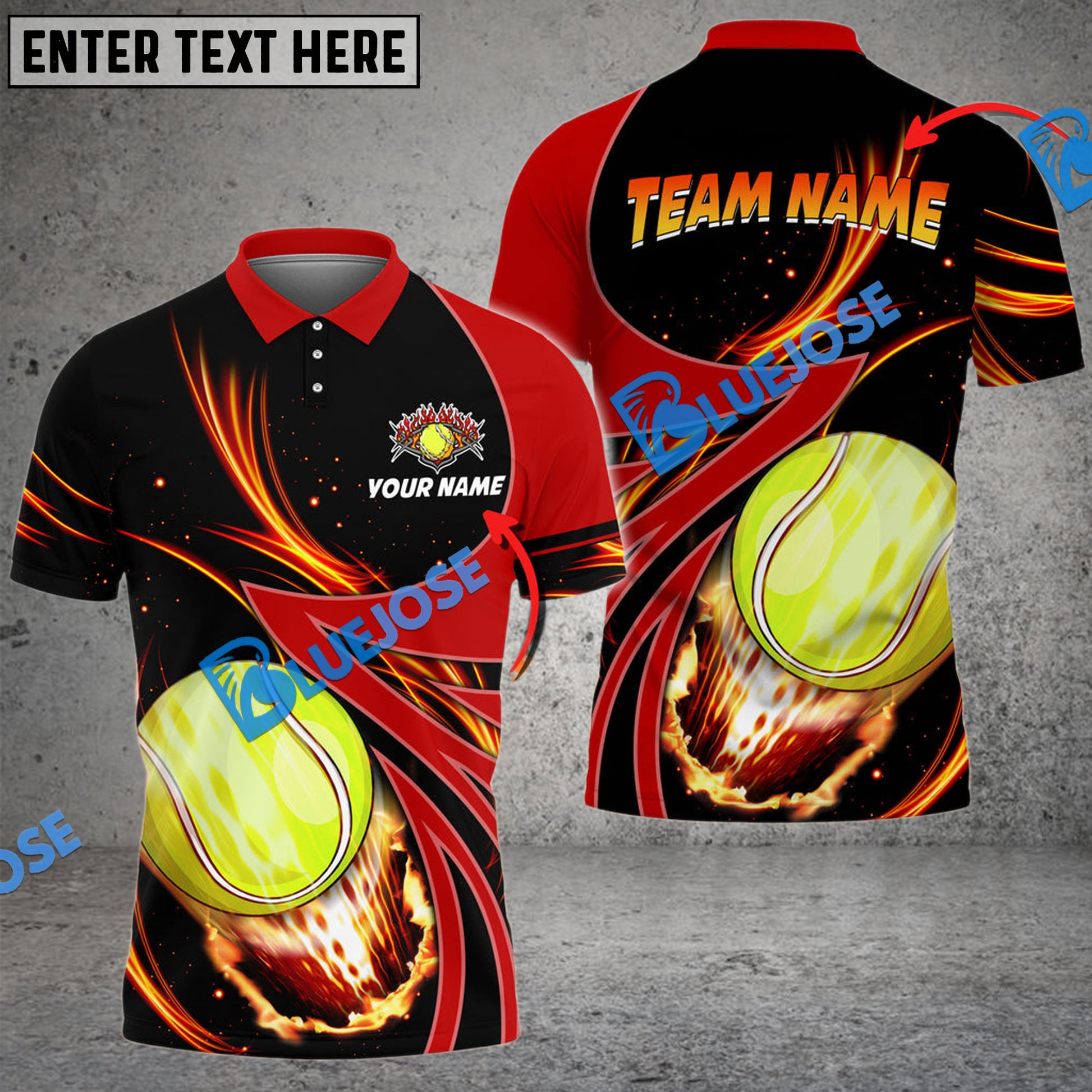 BlueJose Tennis Ball Fire Colourful Personalized Name, Team Name Unisex Shirt ( 4 Colors )