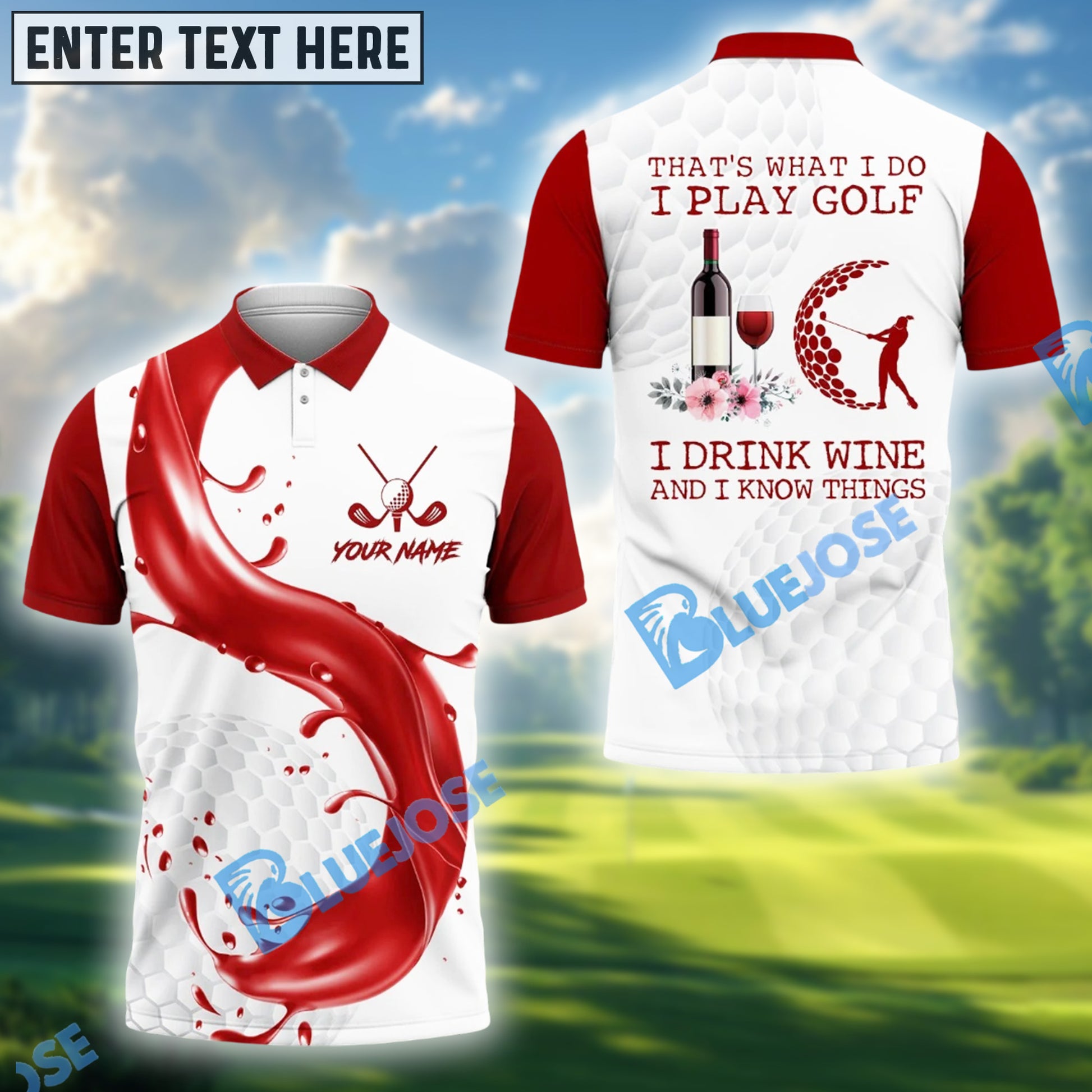 BlueJose That's What I Do I Play Golf I Drink Wine Funny Golf Shirt, Custom Name Golf 3D Shirts