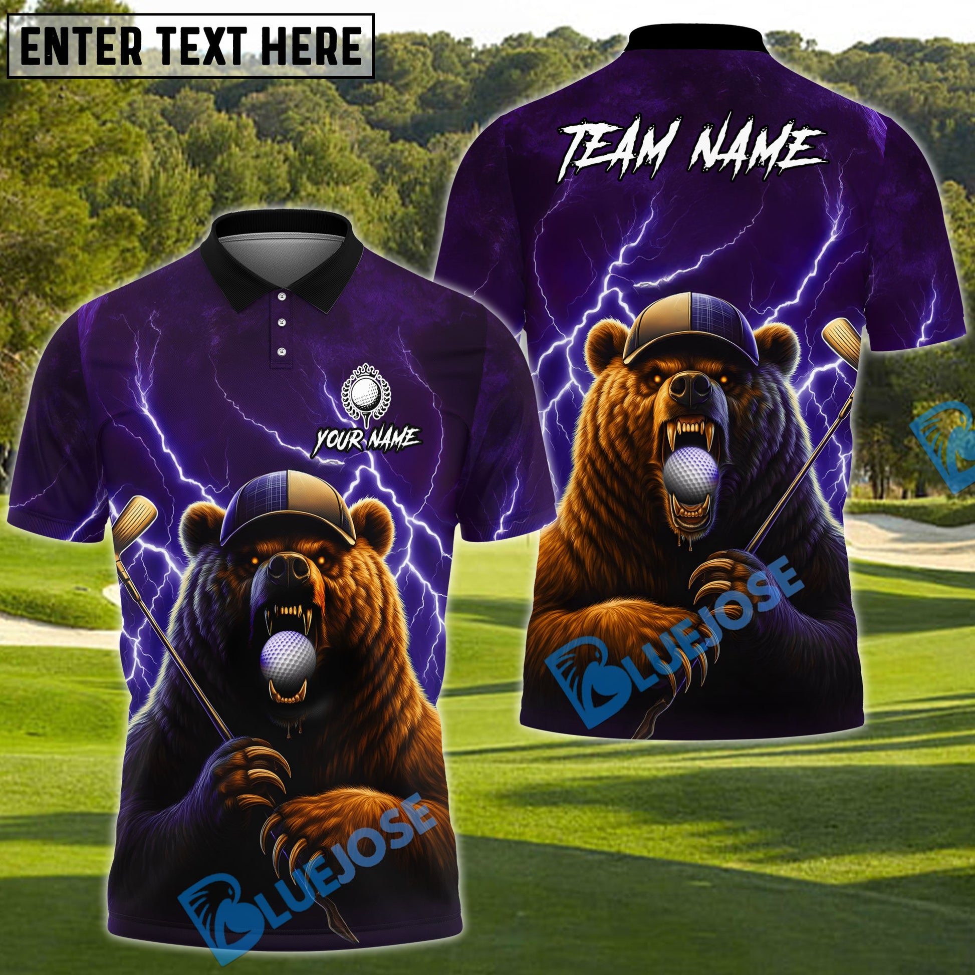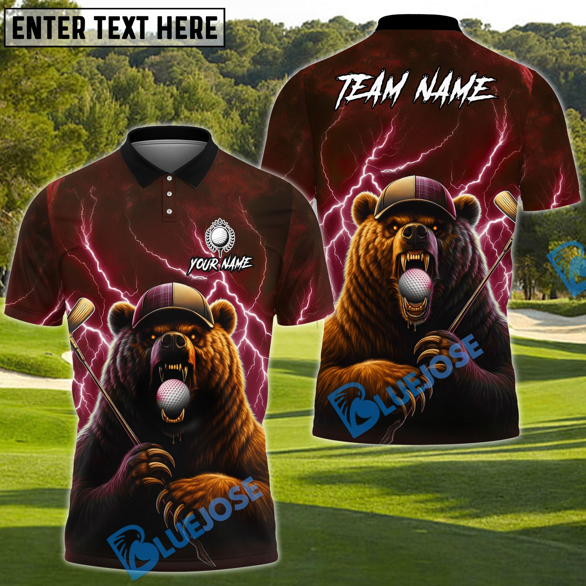 BlueJose Thunder Bear Golf Polo Shirt, Customized Name & Team Name 3D Shirts (4 Colors)