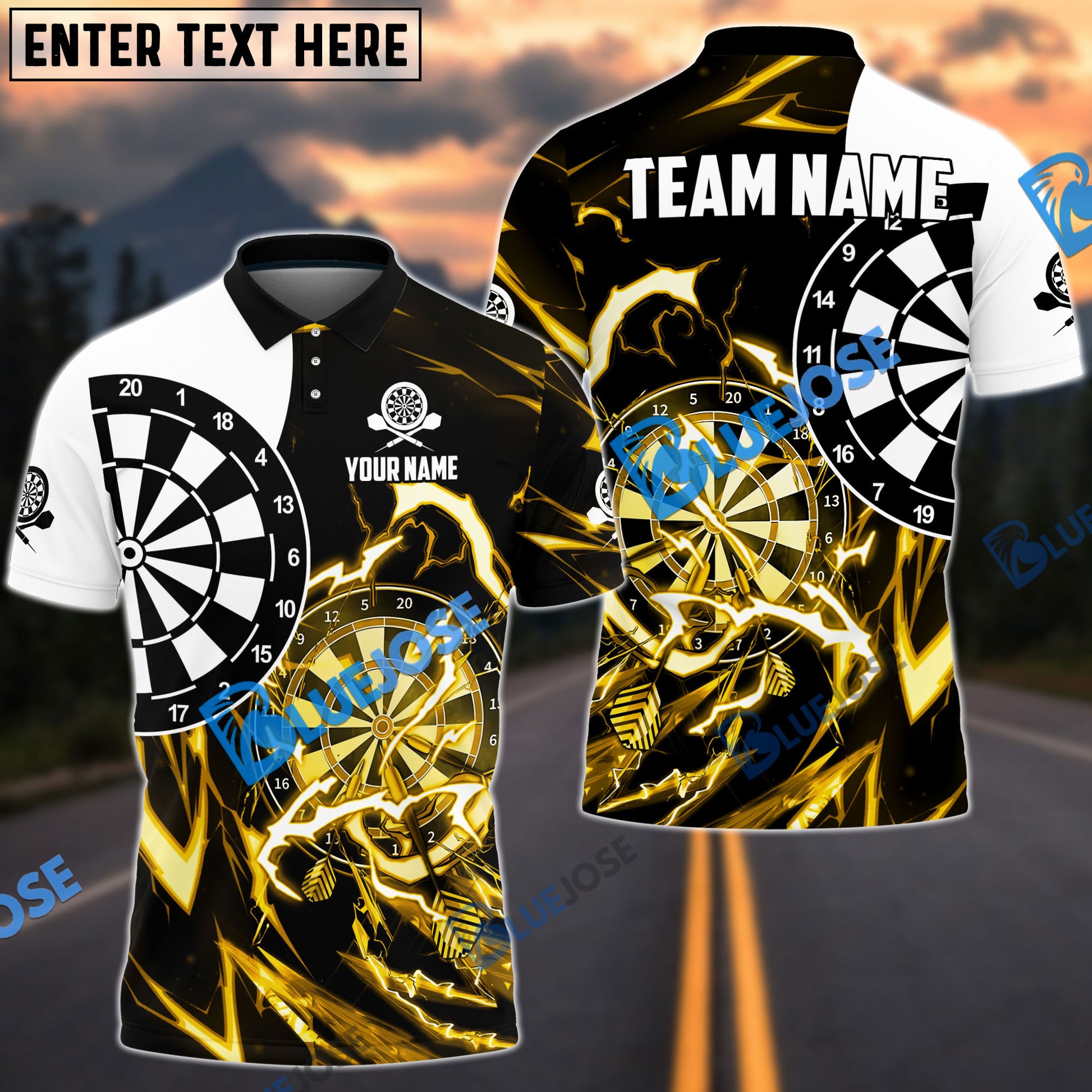 BlueJose Thunder Impact Darts Personalized Name, Team Name 3D Shirt (6 Colors)
