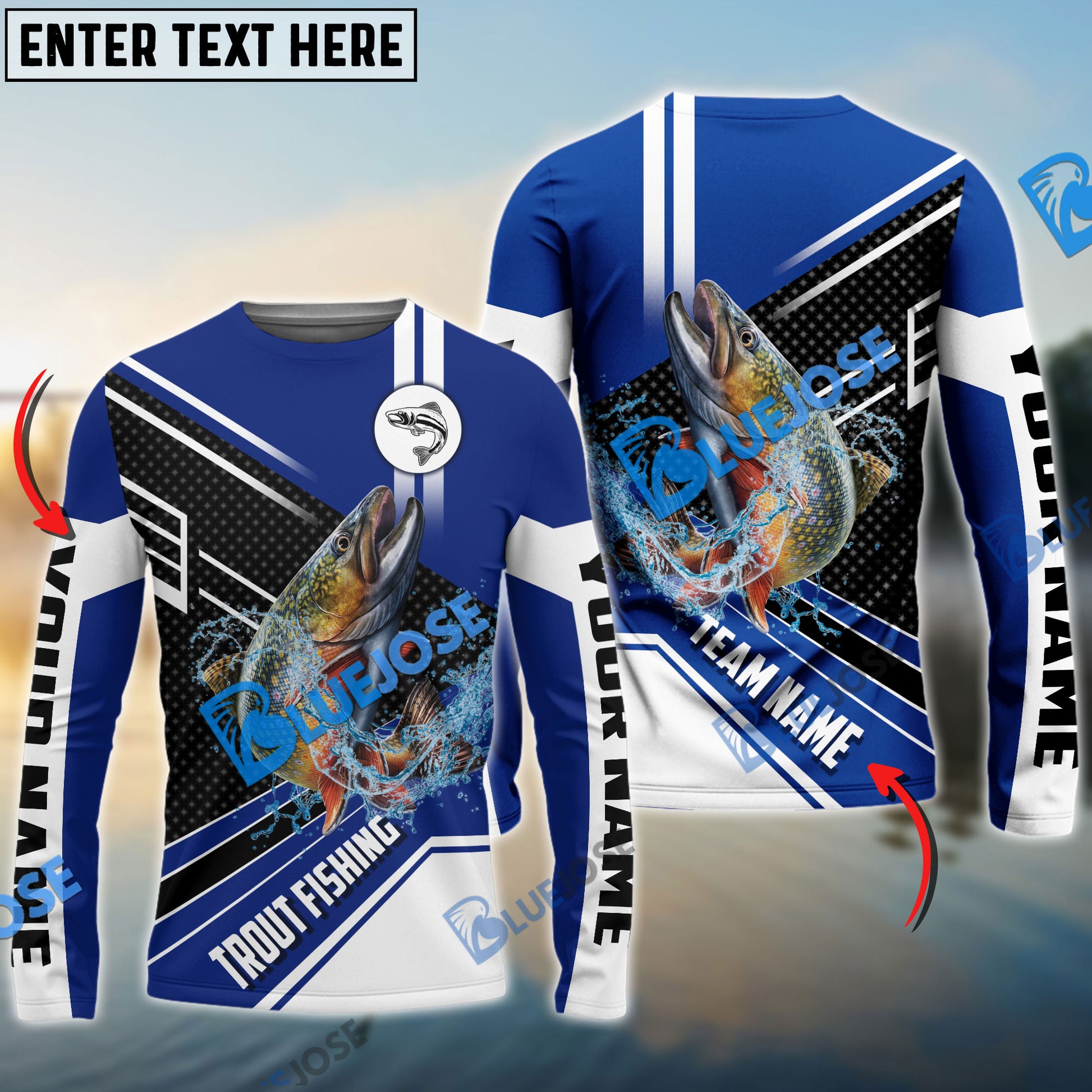 Bluejose Trout Fishing Blue White Sport Custom Name & Team Name 3D Shirts