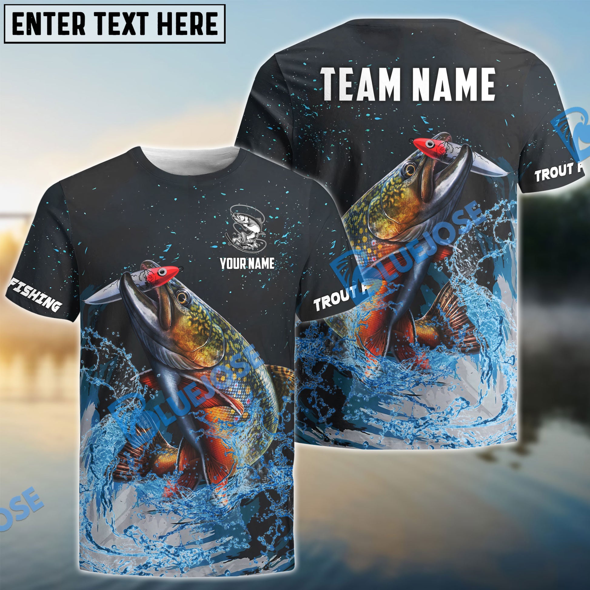 Bluejose Trout Fishing Dark Blue Sport Custom Name & Team Name 3D Shirts