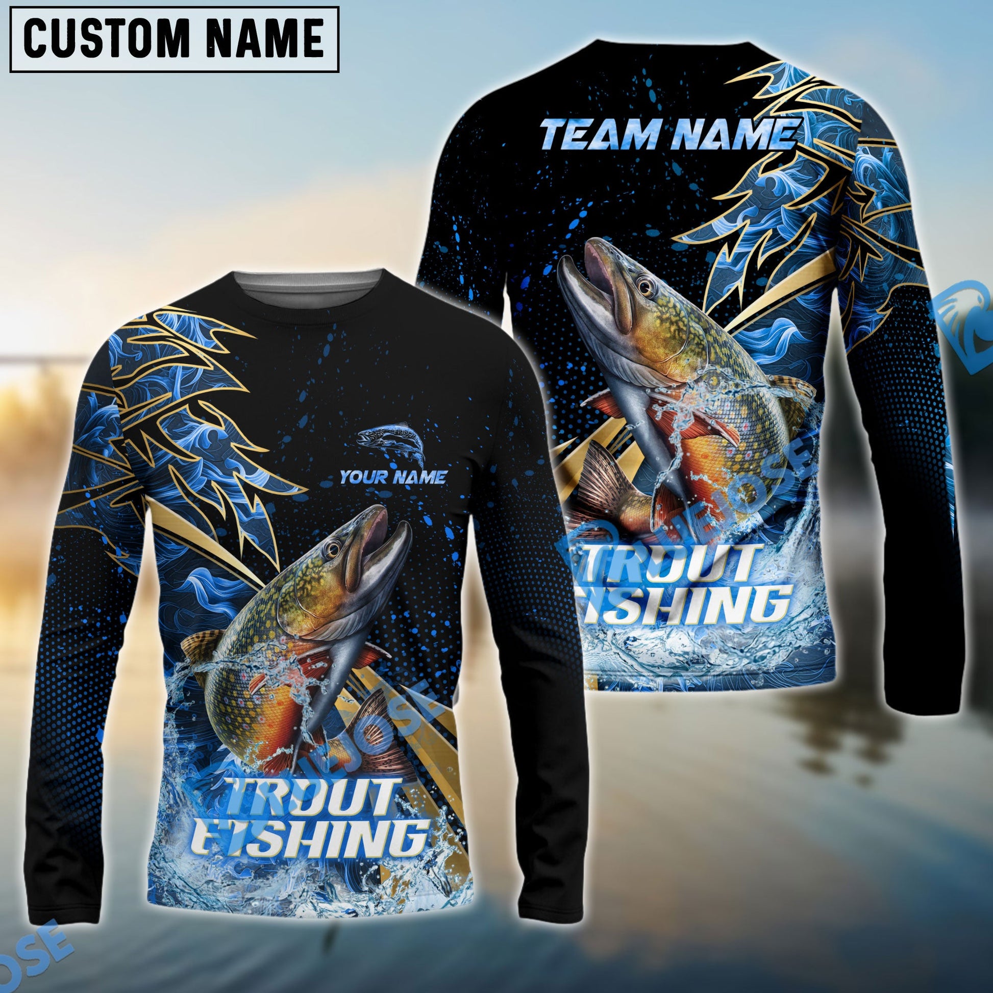 Bluejose Trout Fishing Hooked Jump Splash Custom Name & Team Name 3D Shirts