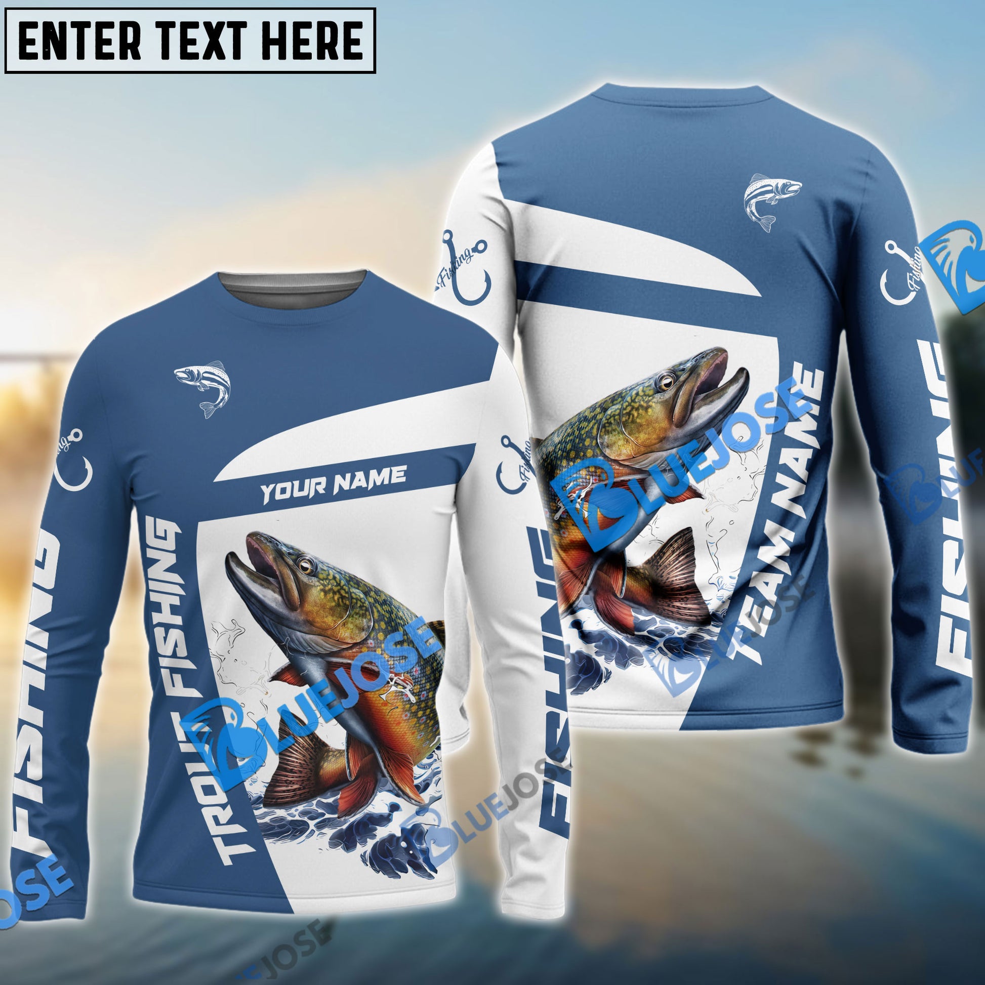 Bluejose Trout Fishing Light Navy Sport Custom Name & Team Name 3D Shirts
