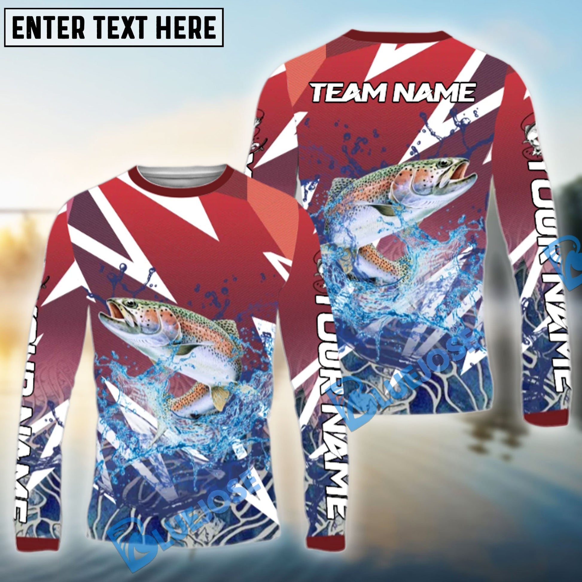 Bluejose Trout Fishing Red Fury Pattern Custom Name & Team Name 3D Shirts