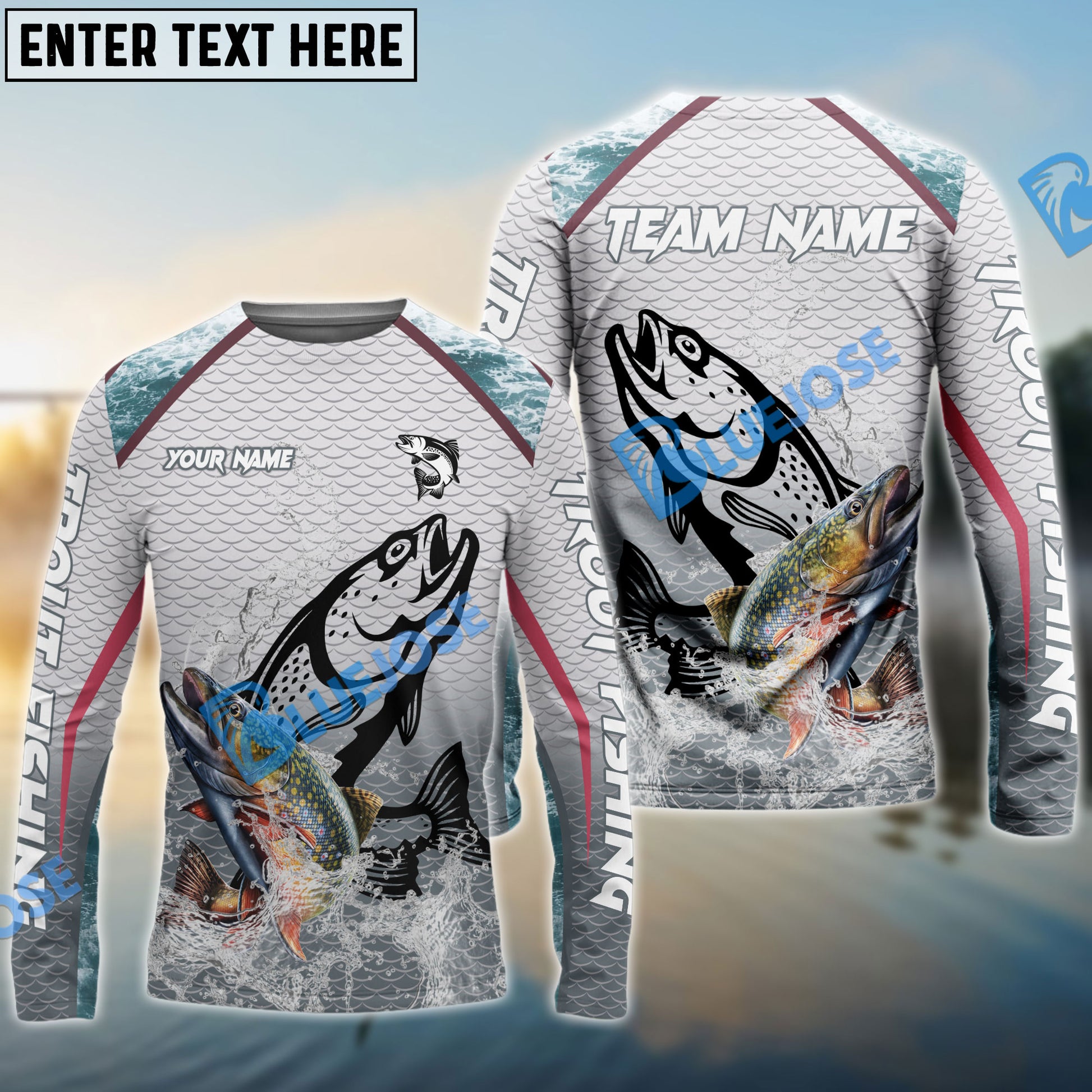 Bluejose Trout Fishing White Fin Water Silhouette Sport Custom Name & Team Name 3D Shirts