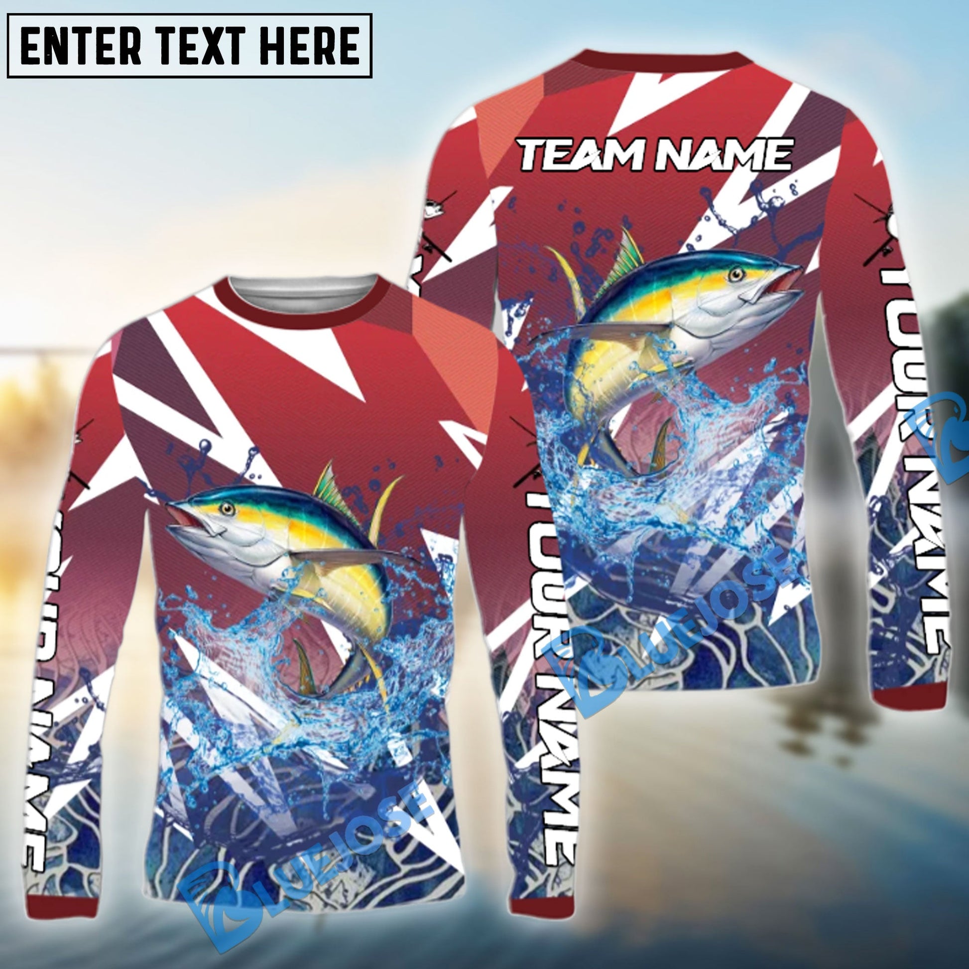 Bluejose Tuna Fishing Red Fury Pattern Custom Name & Team Name 3D Shirts
