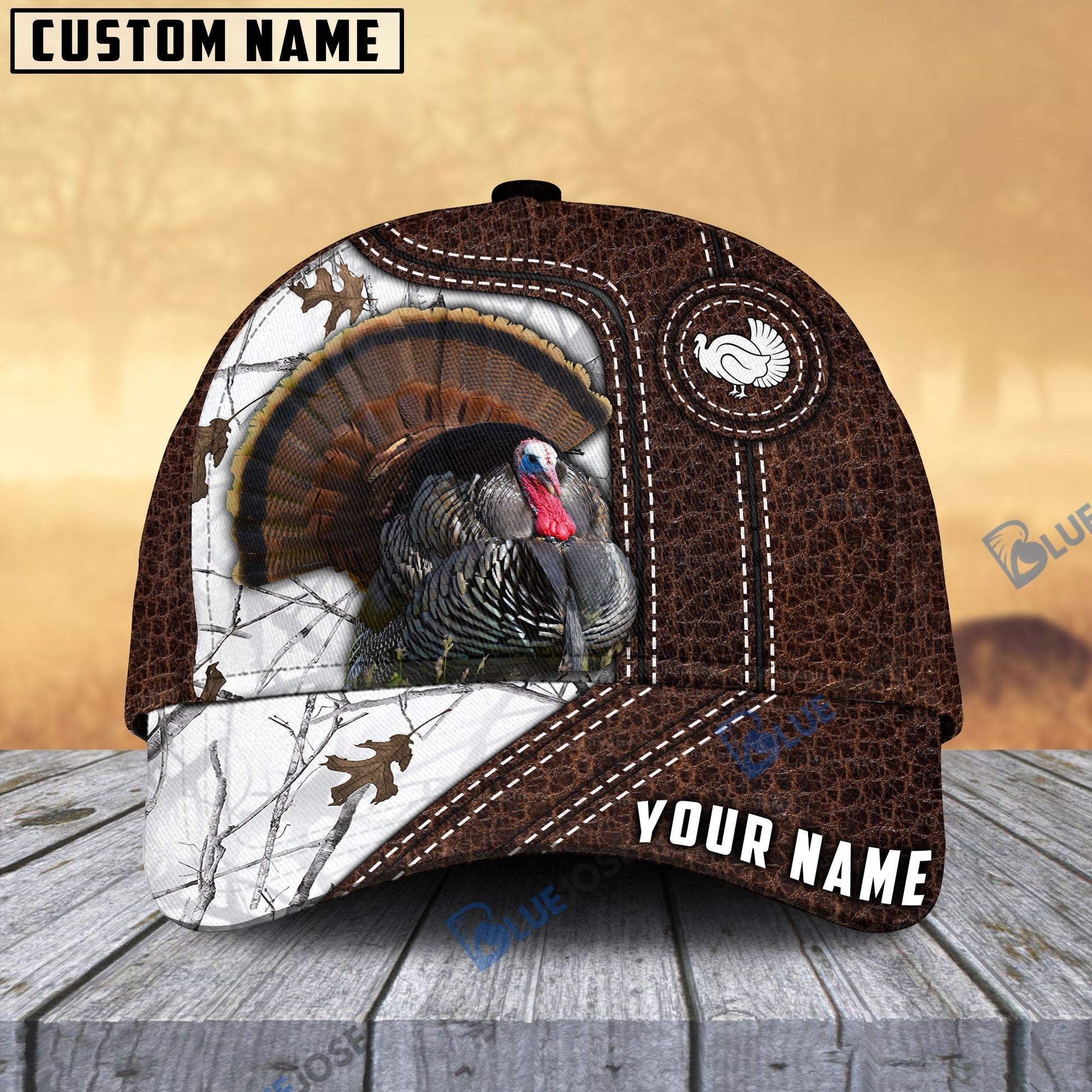 BlueJose Turkey Hunting Premium Leather Pattern Personalized Name Cap (4 Colors)