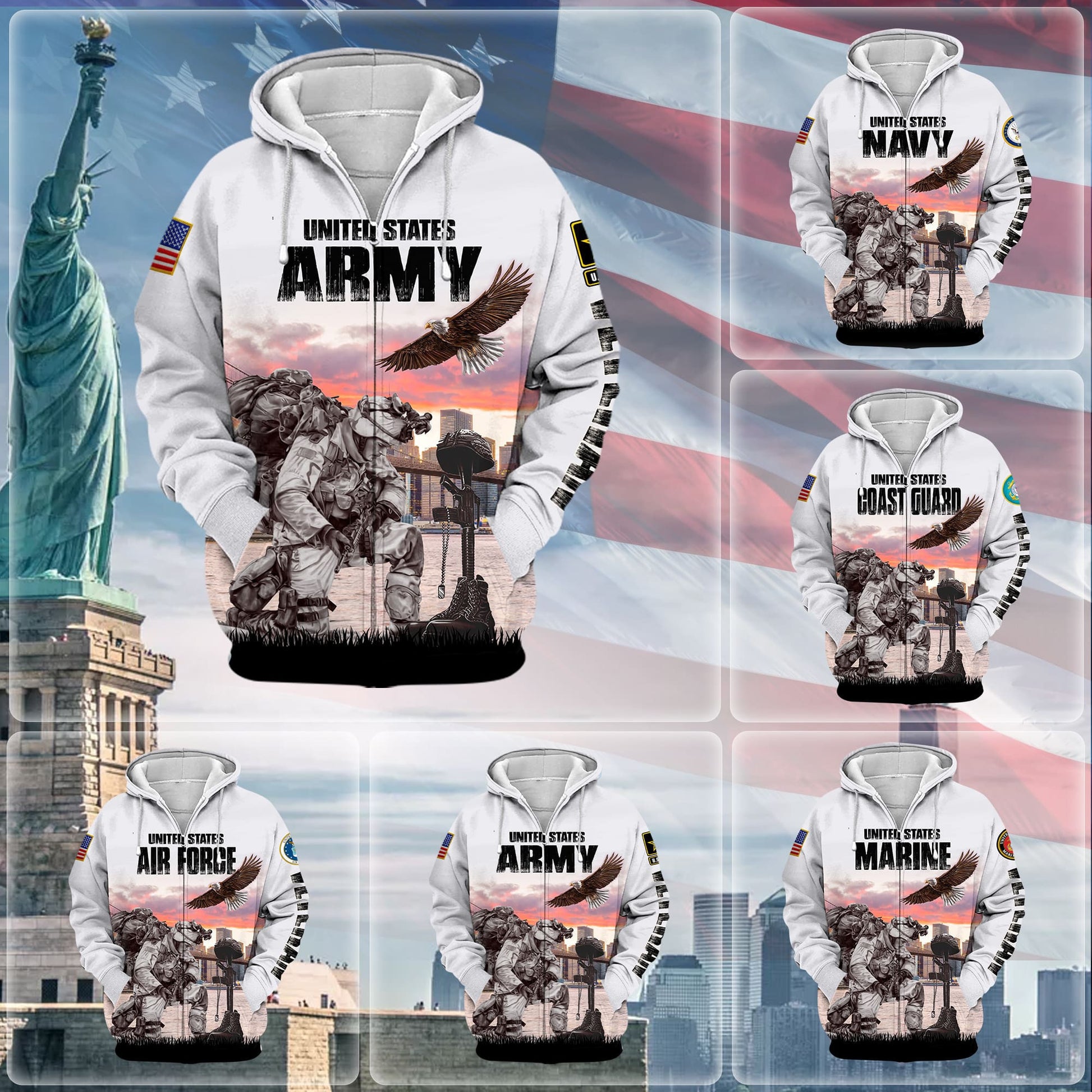 BlueJose Unique Multiple Service US Veteran Zip Hoodie