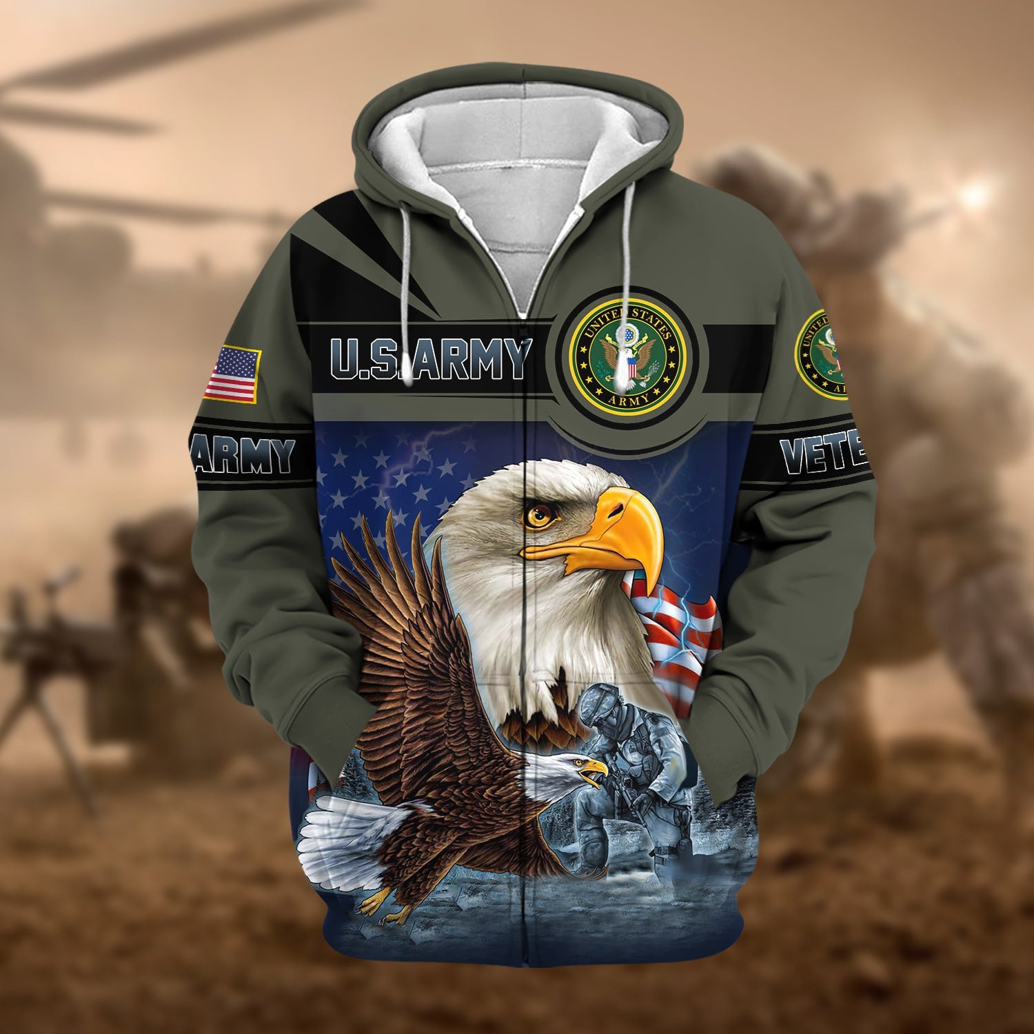 BlueJose Unique US Veteran Eagle Zip Hoodie