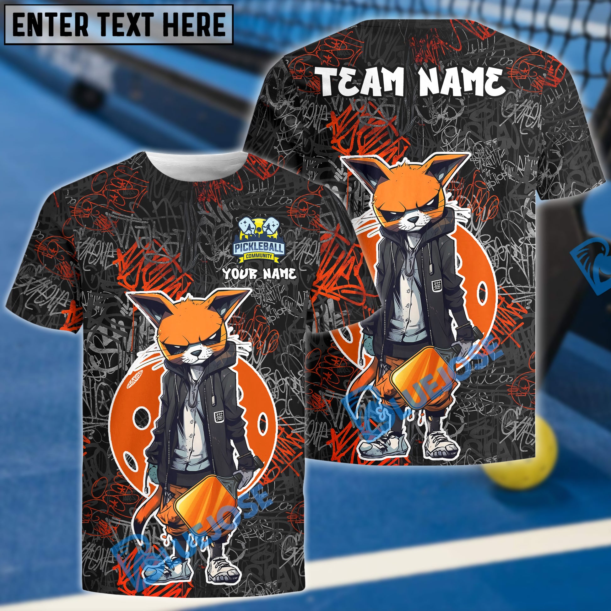 BlueJose Urban Fox Pickleball Graffiti Tee – Street Style Paddle Power Name & Team Name 3D Shirts (4 Colors)