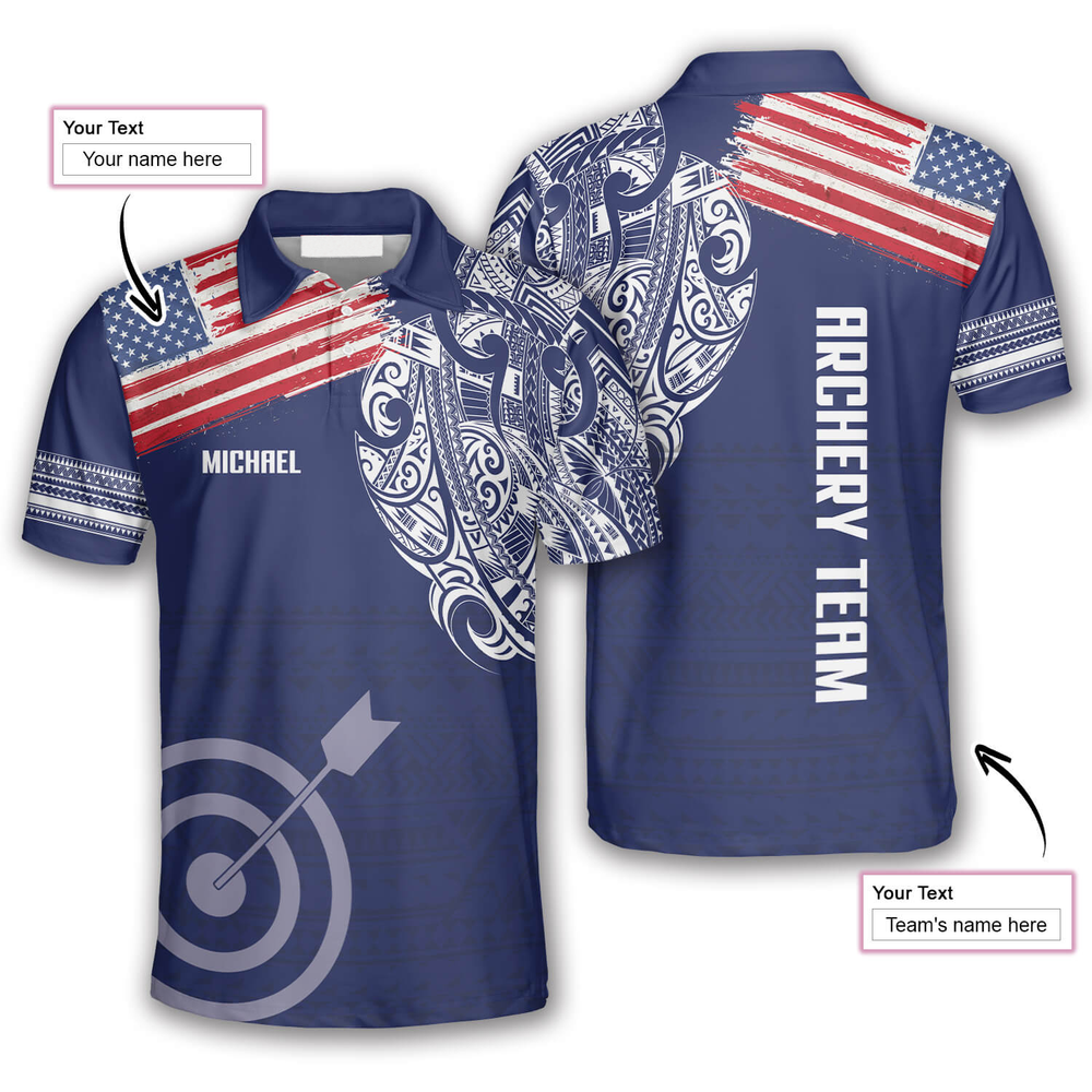 BlueJose US Flag Tribal Pattern Personalized Name Shirt