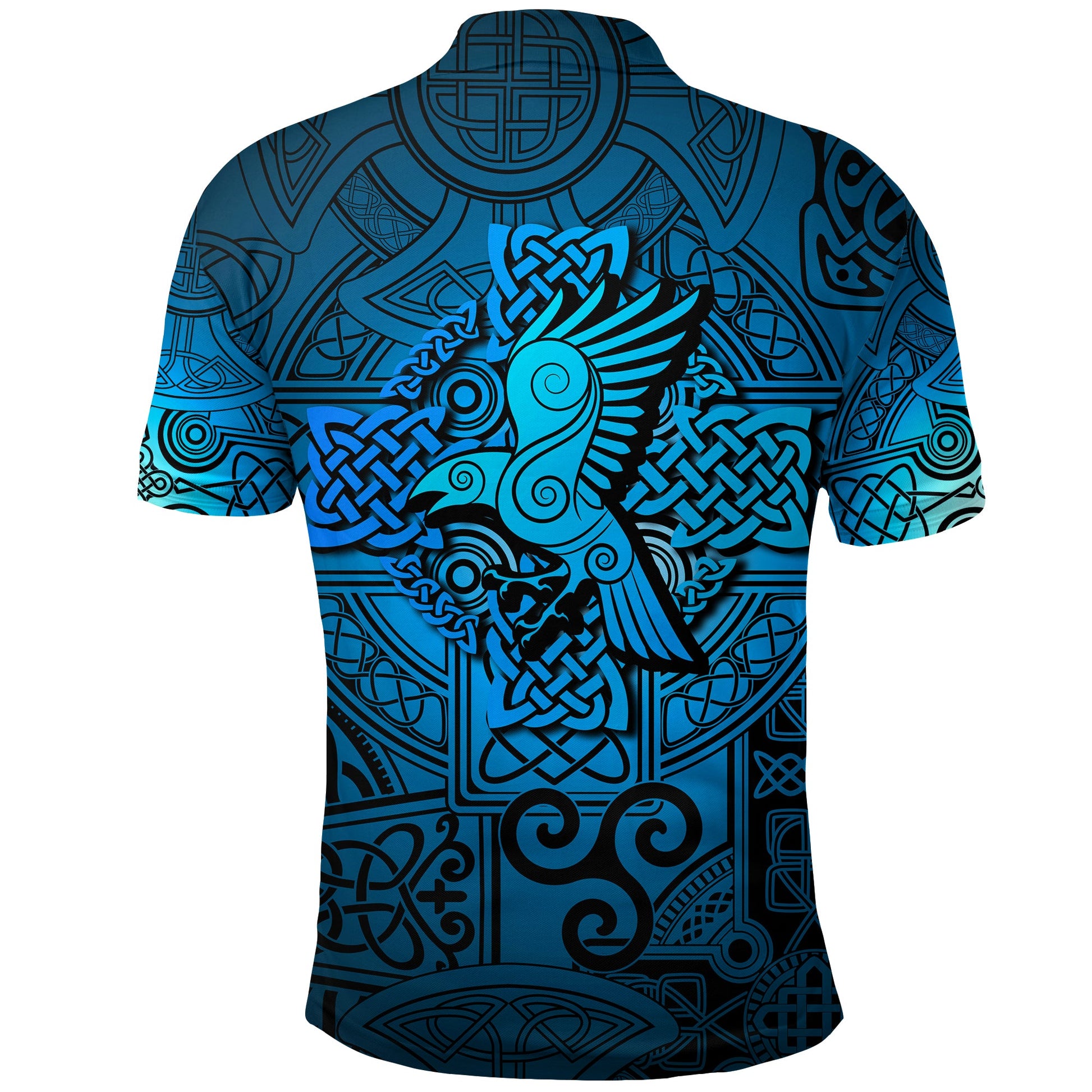 BlueJose Viking Style Polo Shirt - Raven Odin Celtic Cyan
