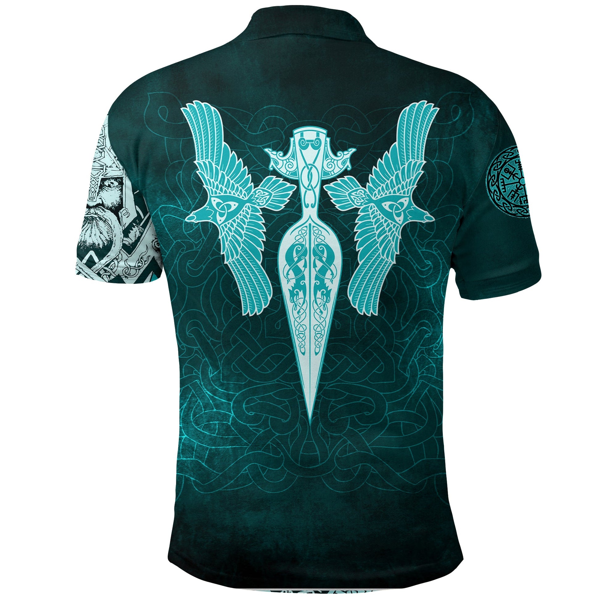 BlueJose Viking Style Polo Shirts - Cyan Spear Of The God Odin - Gungnir And Two Cyan Ravens Style