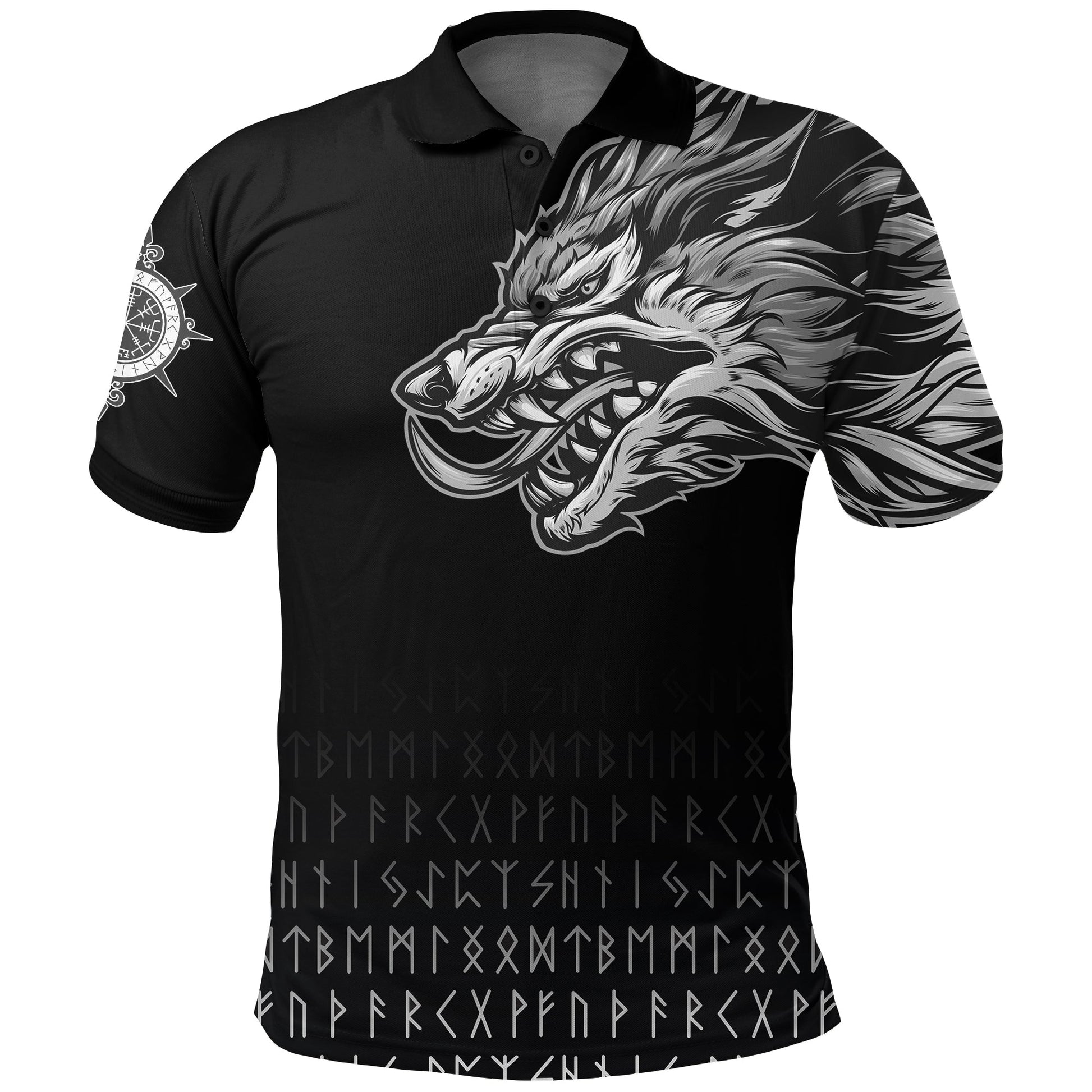BlueJose Viking Style Polo Shirts Fenrir Wolf Near Shoulder