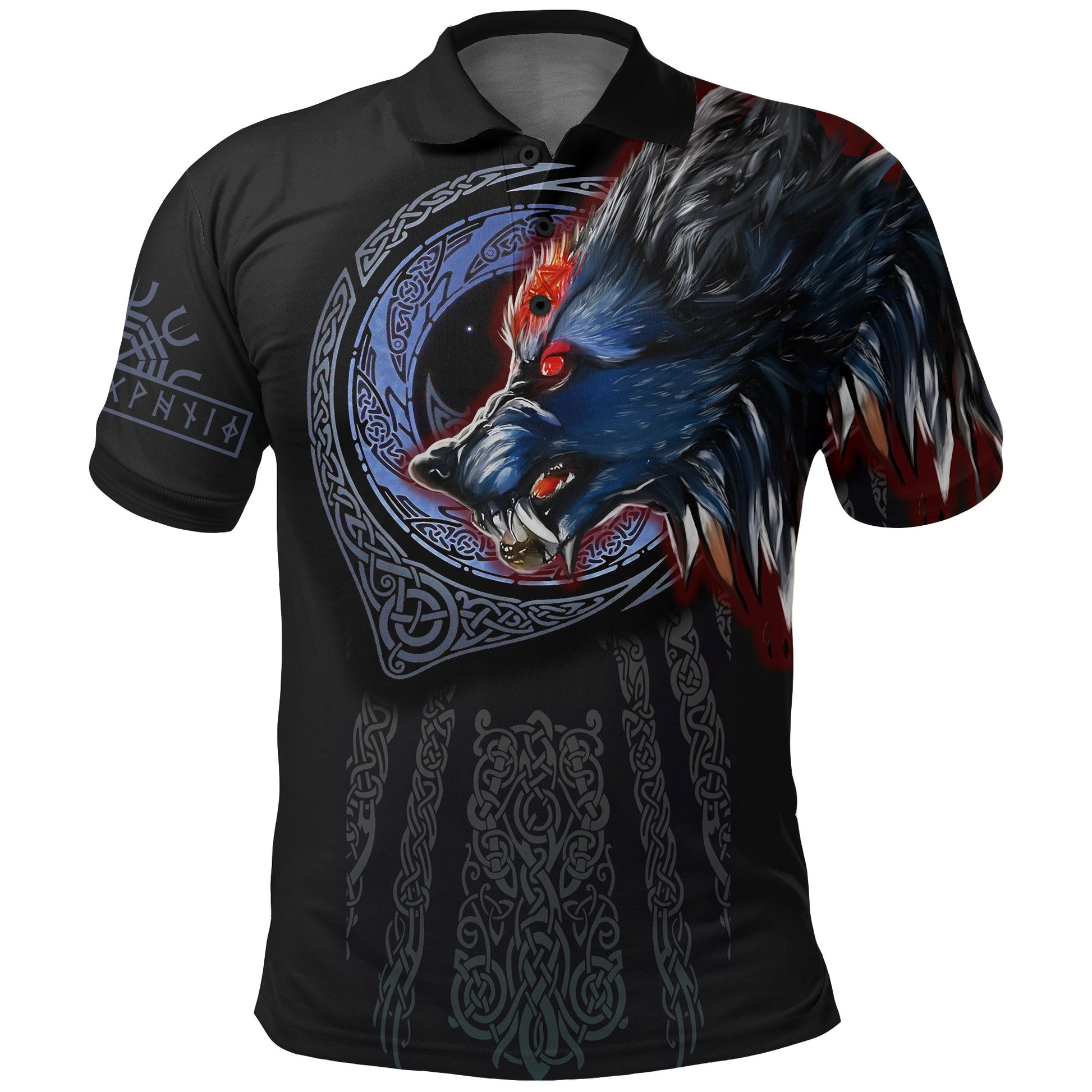 BlueJose Viking Style Polo Shirts - Viking Fenrir Wolf 3D