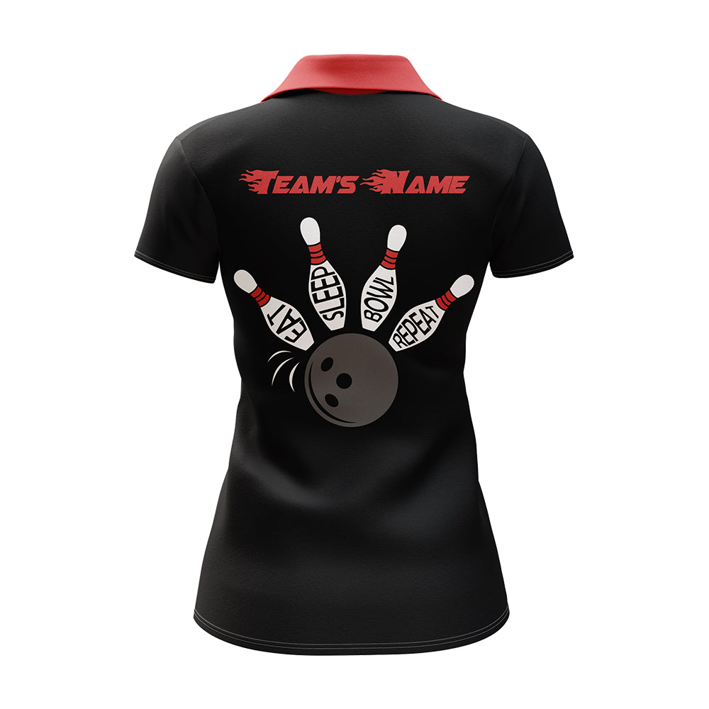 BlueJose Vintage Red & Black Bowling Eat Sleep Bowl Repeat Customized Name 3D Shirt For Women