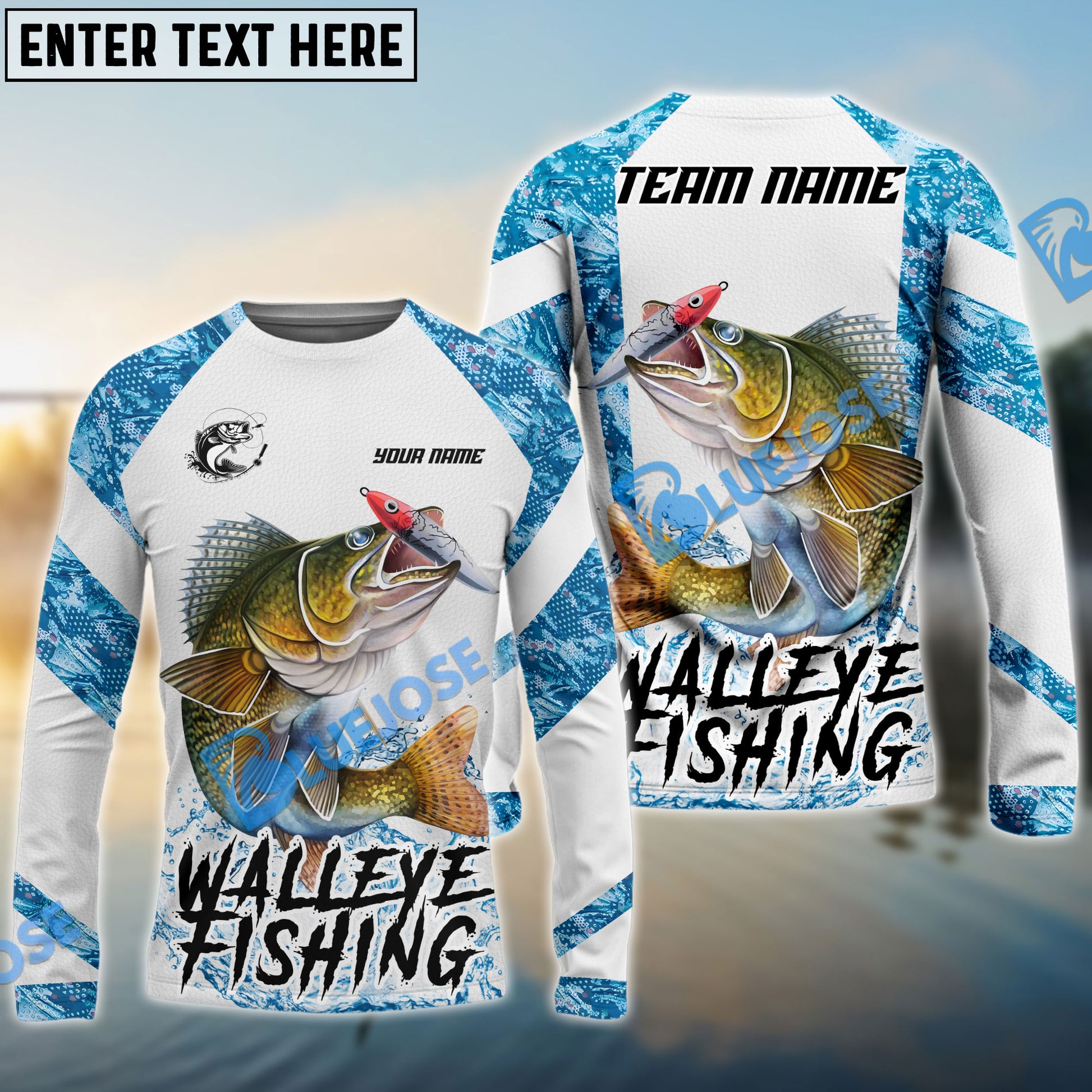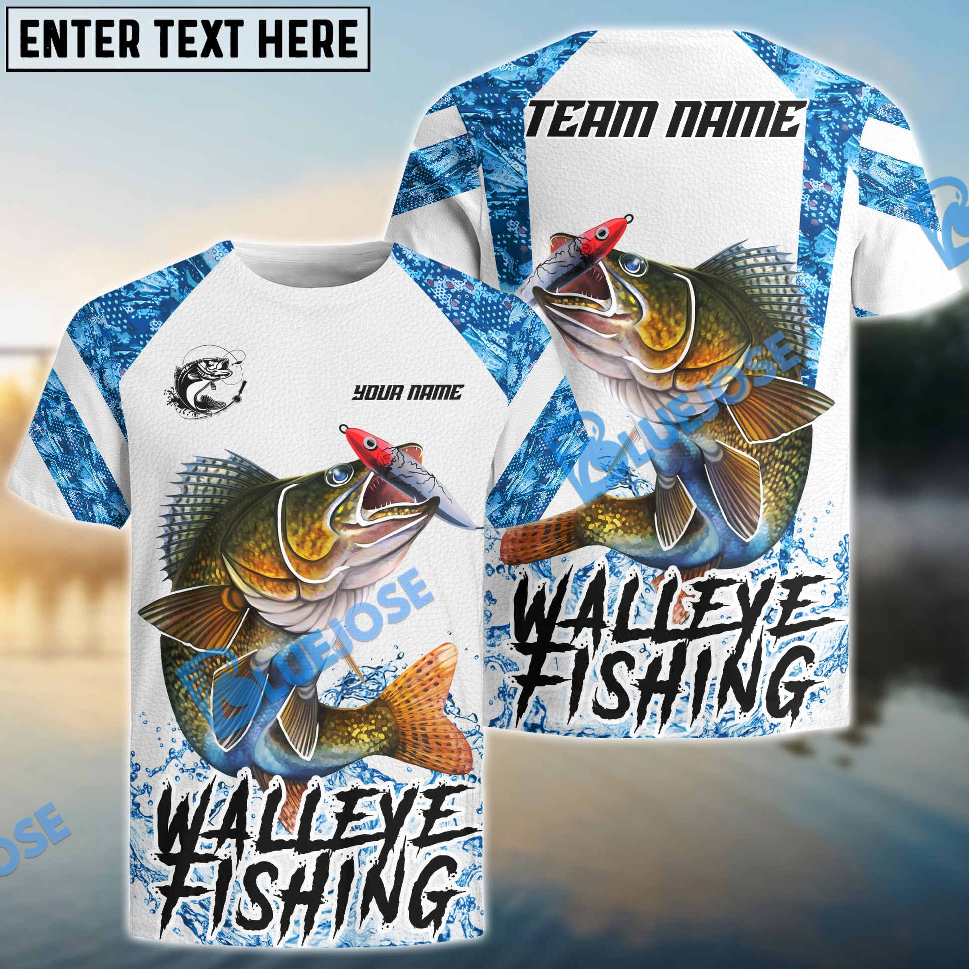 Bluejose Walleye Fishing Blue Camo White Pattern Sport Custom Name & Team Name 3D Shirts