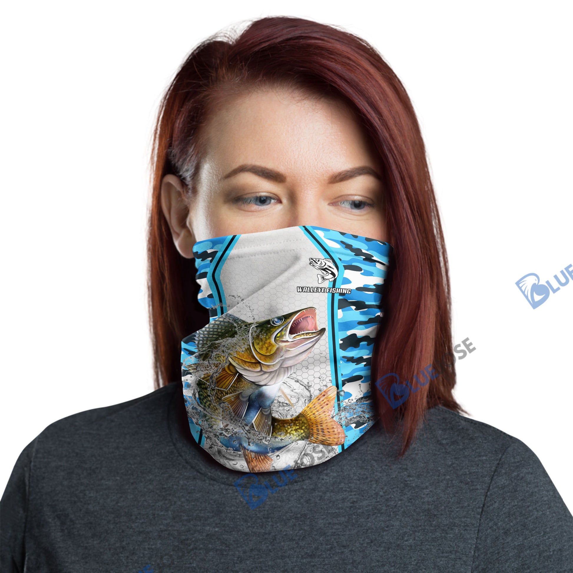 BlueJose Walleye Fishing Light Blue Camo Sport Neck Gaiter