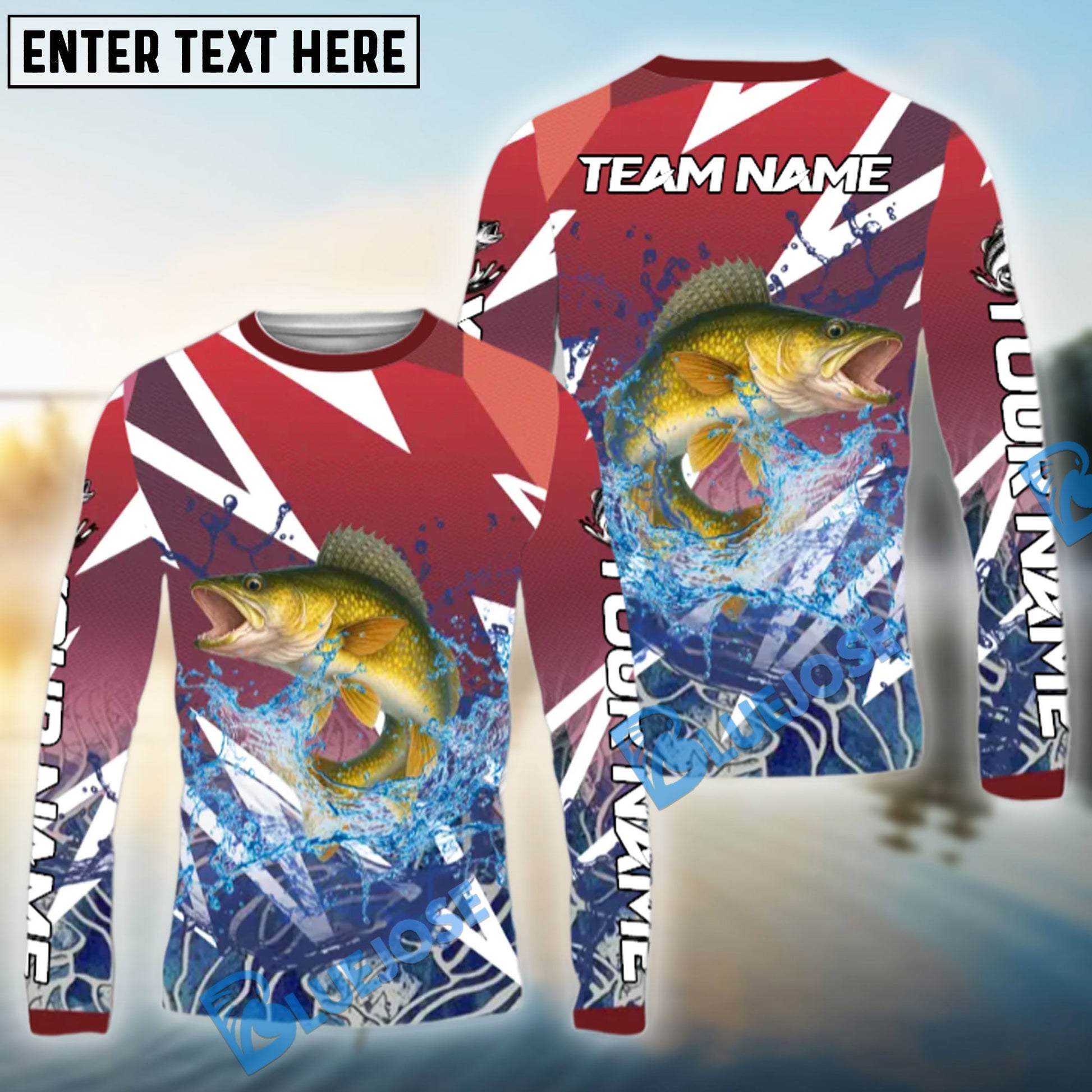 Bluejose Walleye Fishing Red Fury Pattern Custom Name & Team Name 3D Shirts
