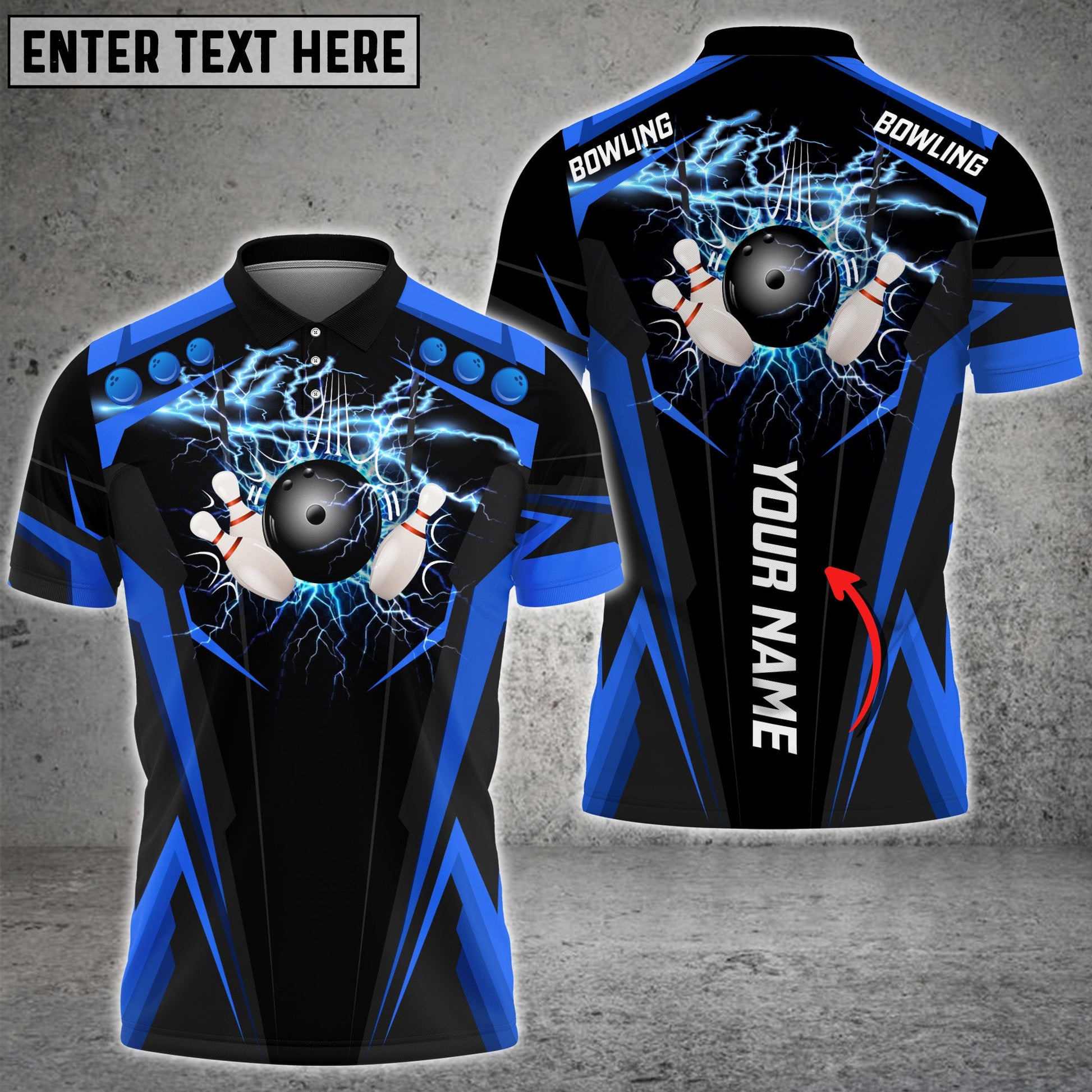 BlueJoses Blue Bowling Ball Crashing The Pins Thunder Pattern Premium Customized Name All Over Printed Shirt