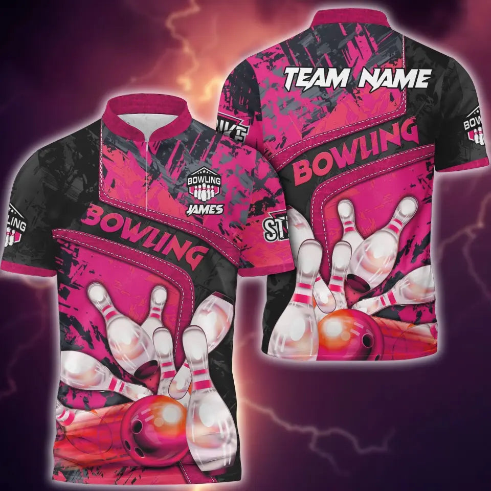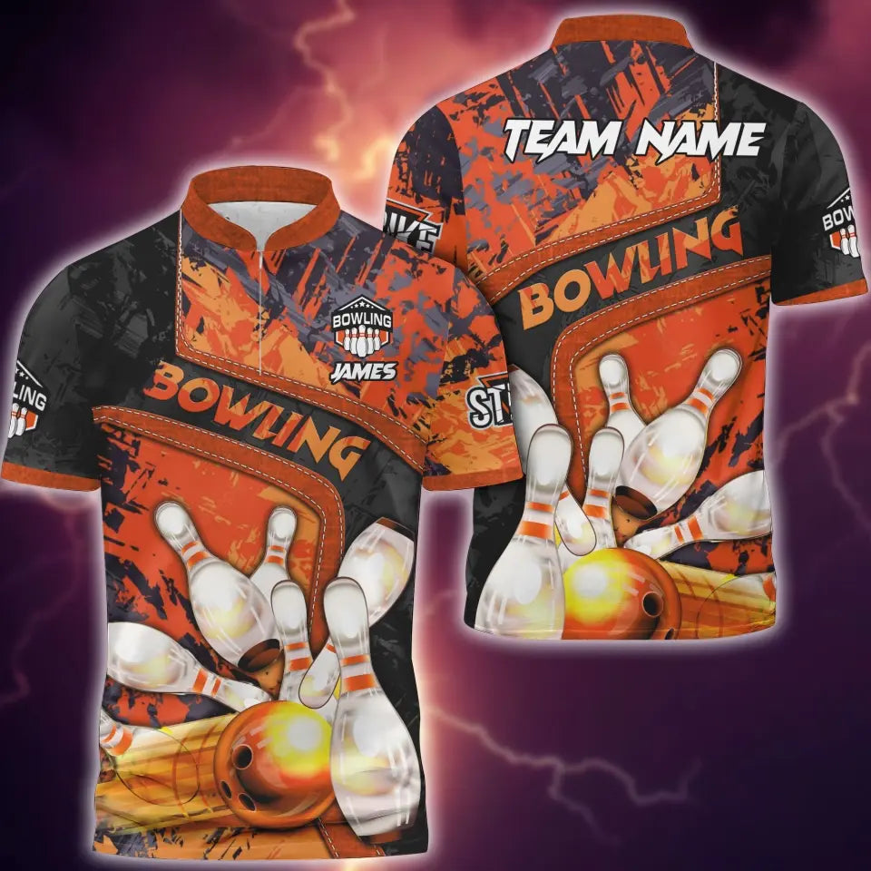 BlueJoses Bowling And Pins Abstract Grunge and Multicolor Personalized Name, Team Name 3D Shirt