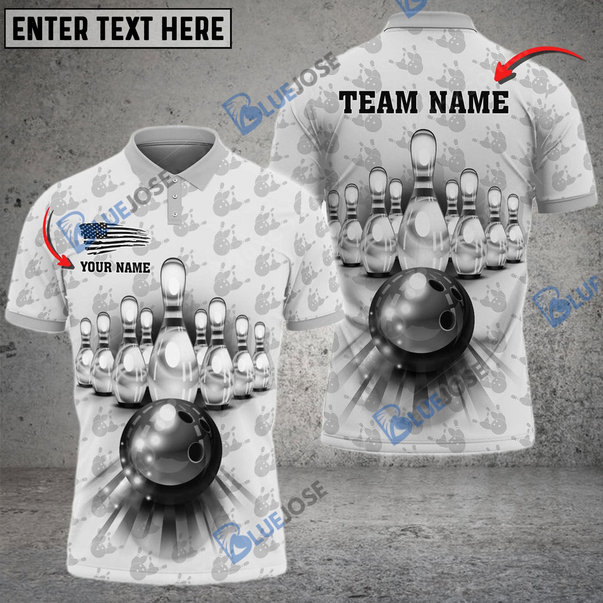 BlueJoses Bowling And Pins American Pattern Multicolor Customized Name 3D Shirt ( 4 Colors )