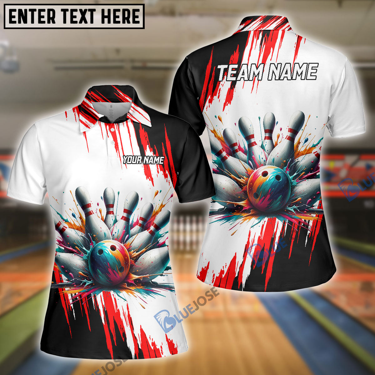 BlueJoses Bowling And Pins Black Red Customized Name 3D Shirt