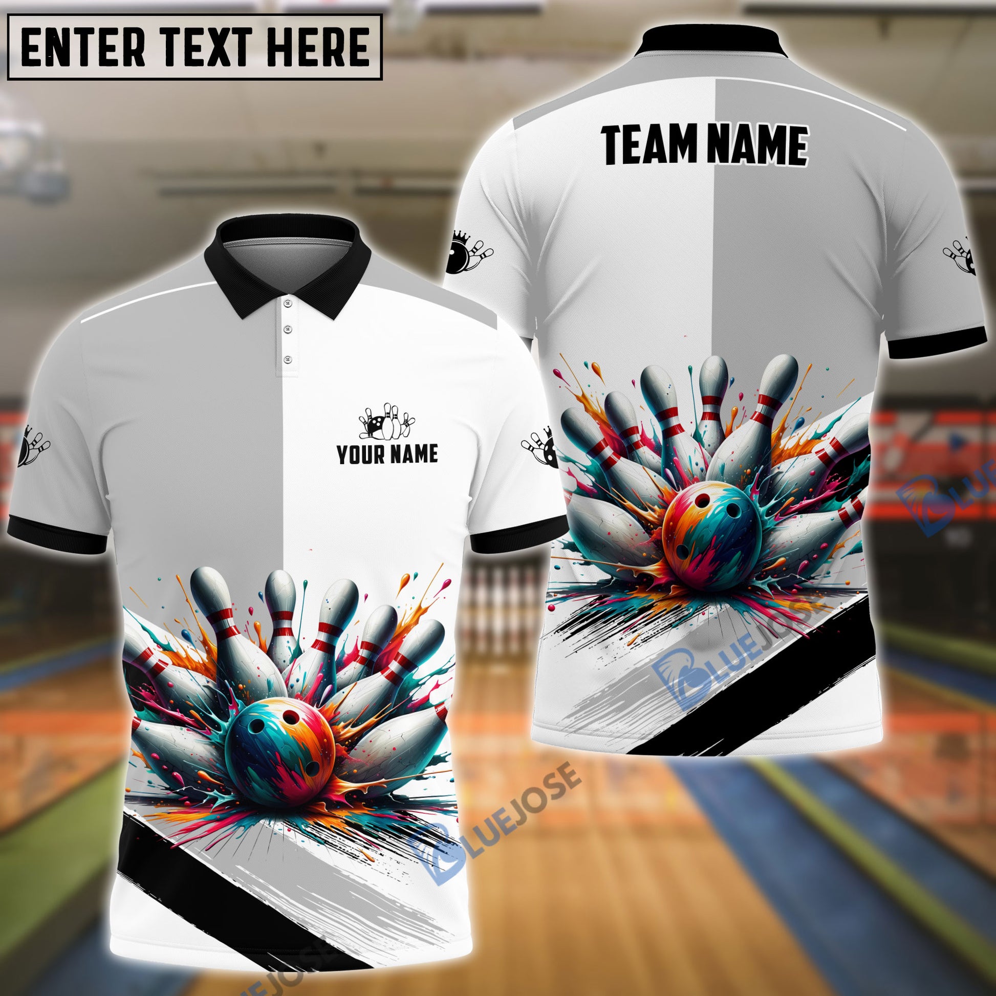 BlueJoses Bowling And Pins Black White Customized Name 3D Shirt