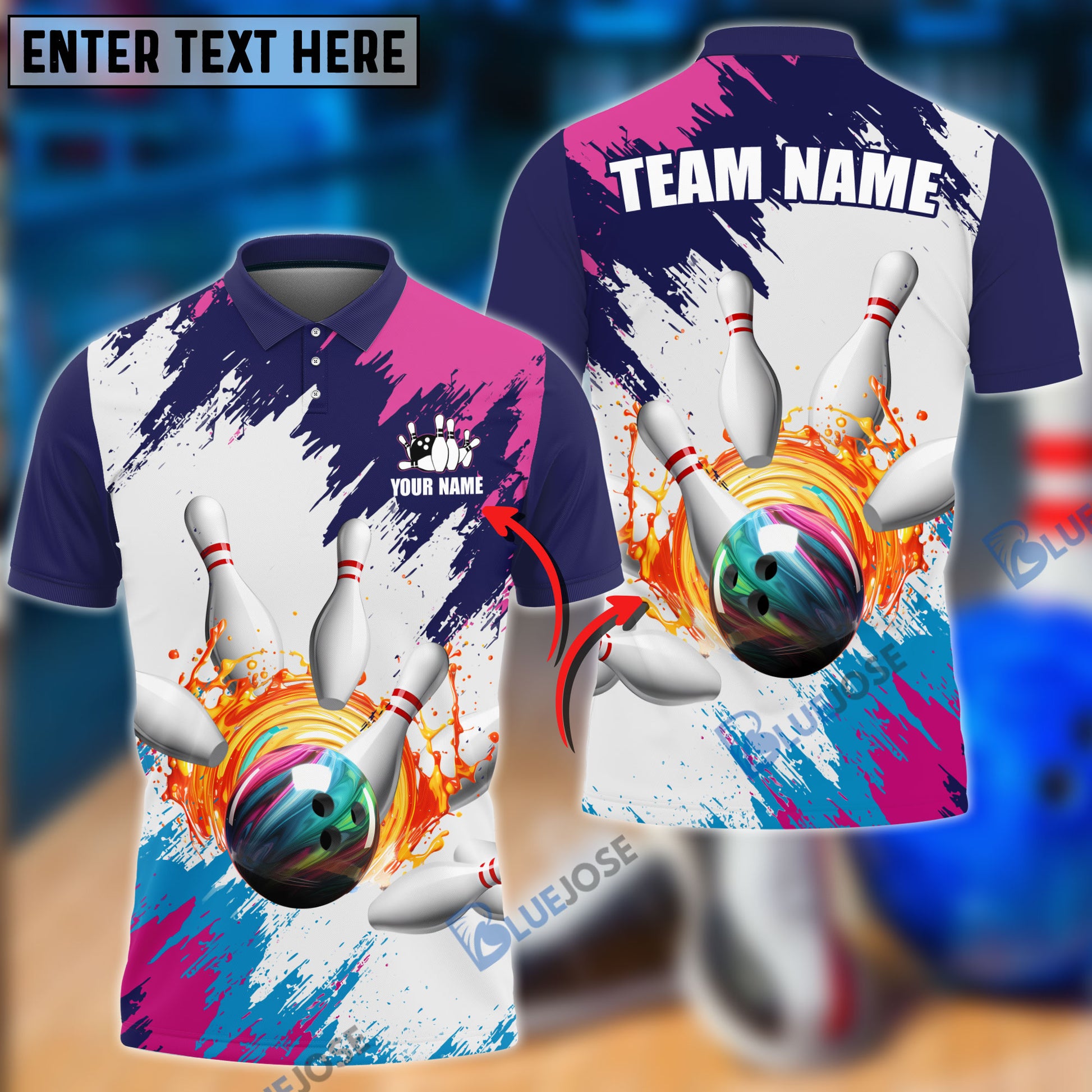 BlueJoses Bowling And Pins Blue Pink Customized Name 3D Shirt