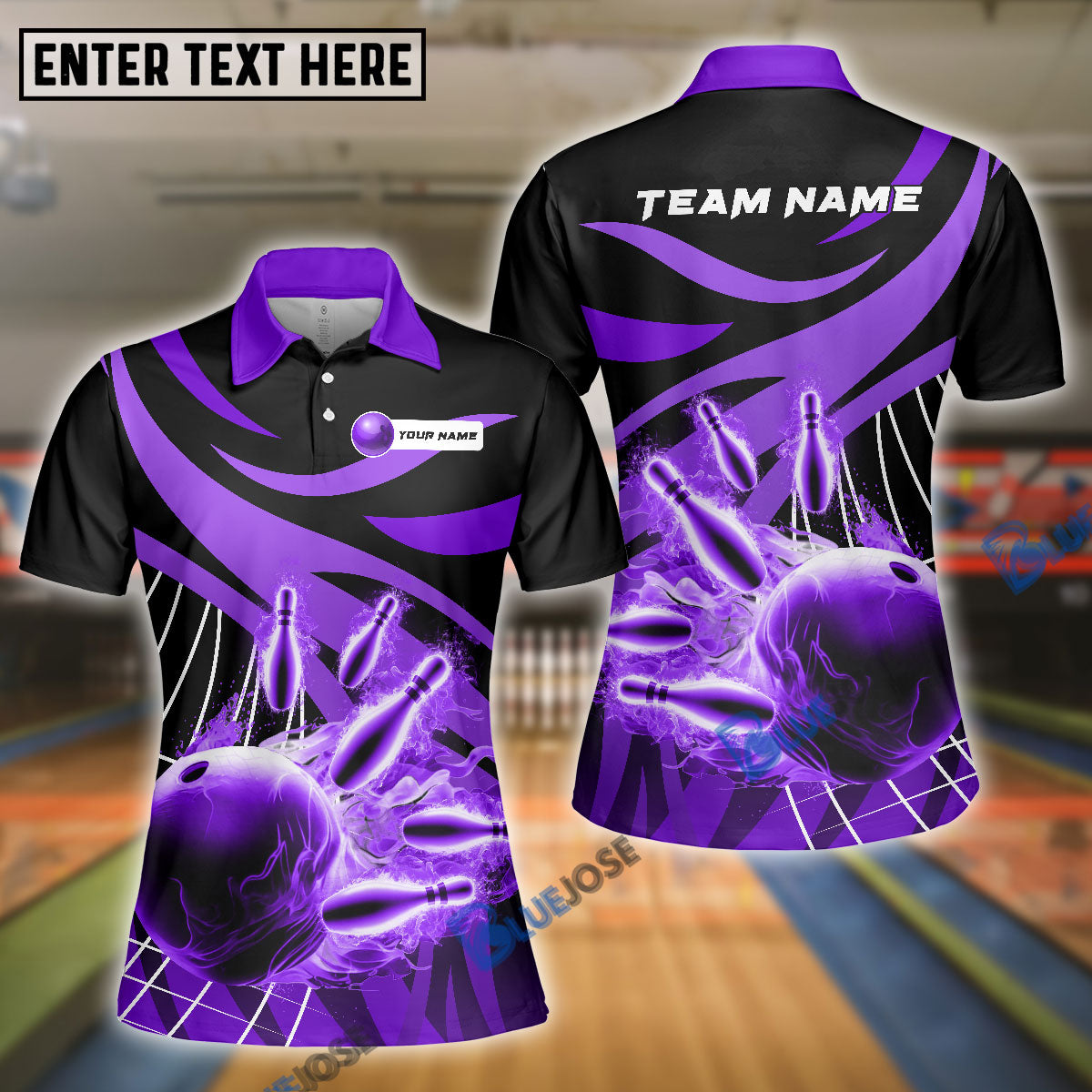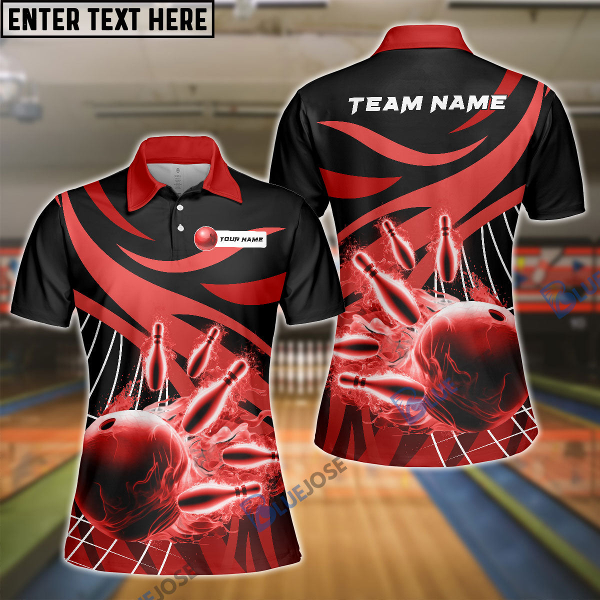 BlueJoses Bowling And Pins Broken Pattern Customized Name, Team Name 3D Shirt for Women (4 Colors)