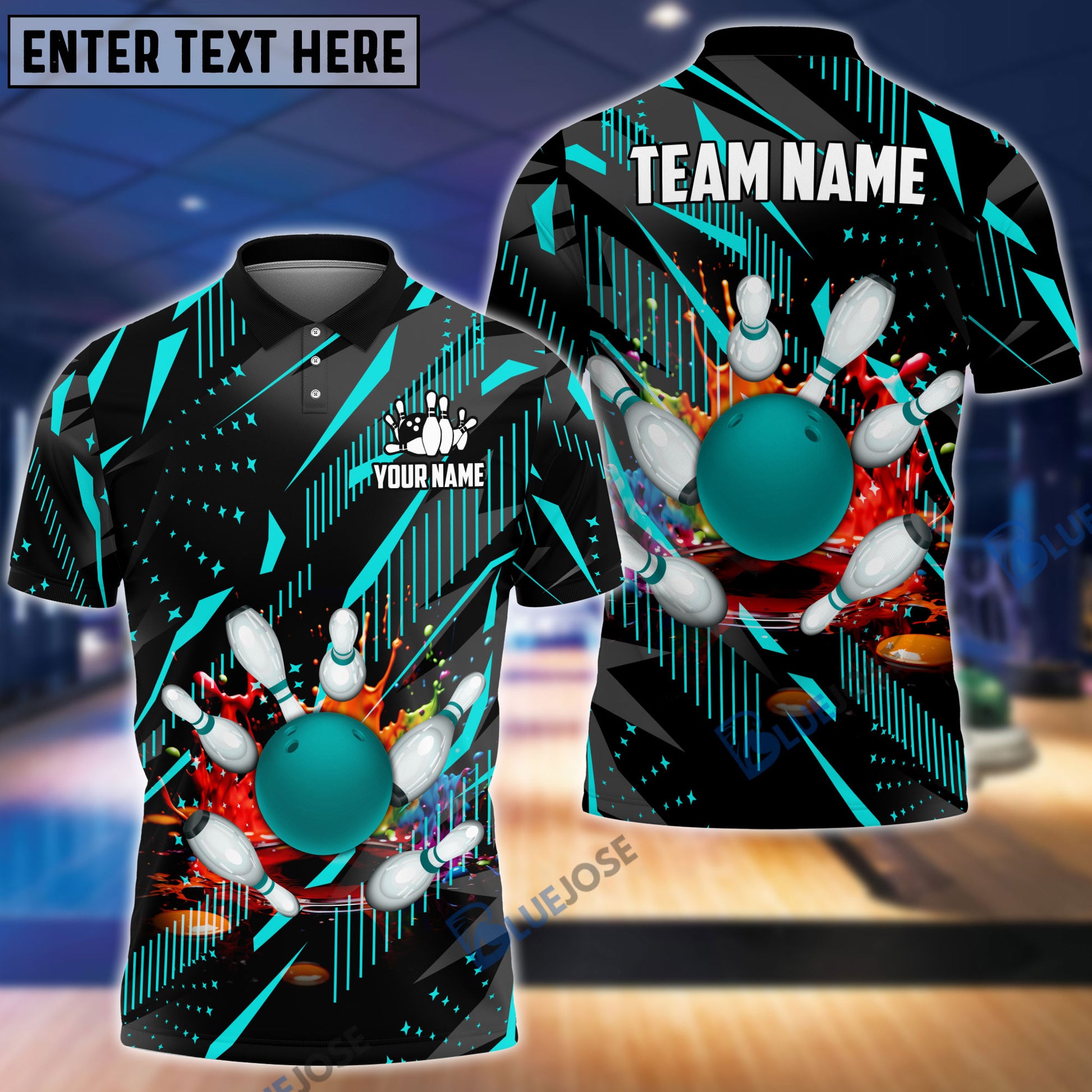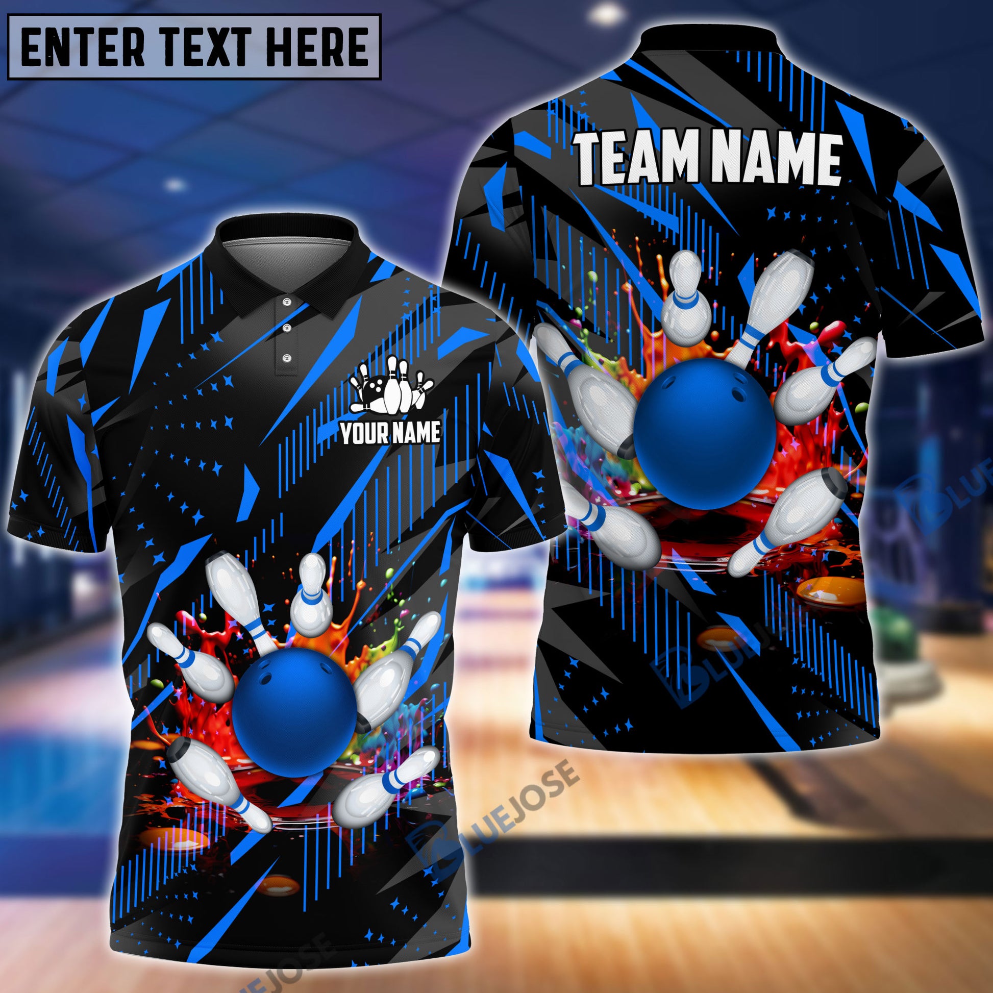 BlueJoses Bowling And Pins Classic Fireworks Customized Name 3D Shirt (4 Colors)