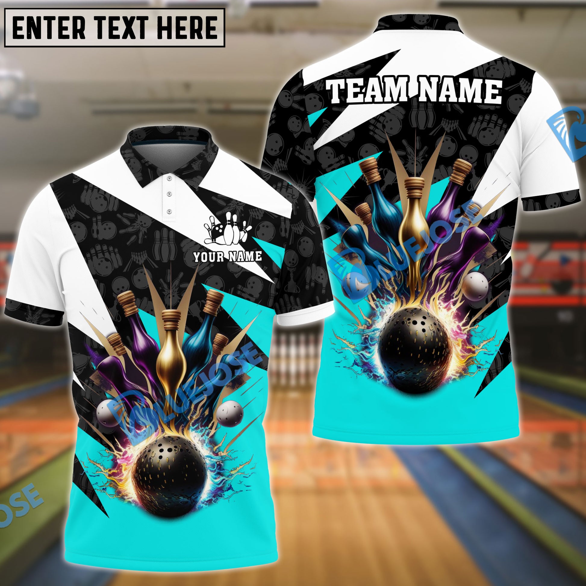 BlueJoses Bowling And Pins Color Lightning Customized Name 3D Shirt ( 4 Colors )