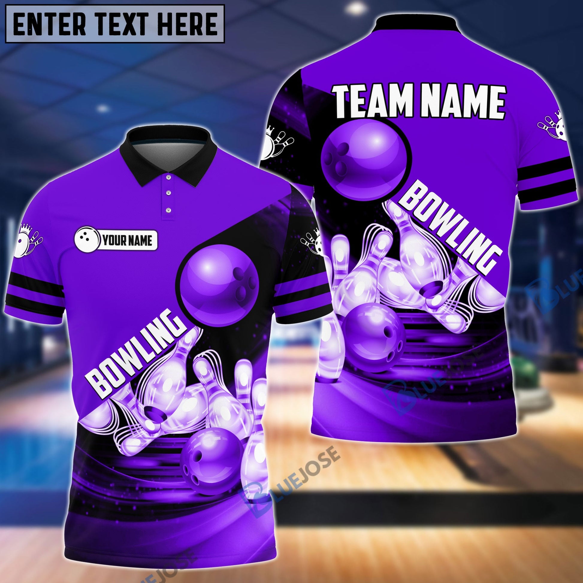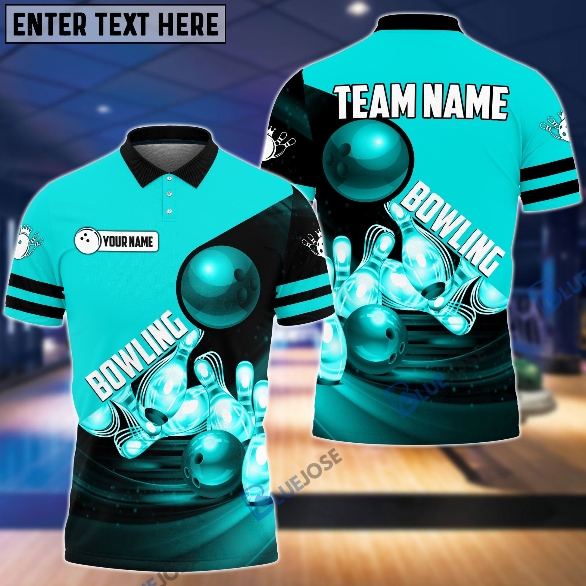 BlueJoses Bowling and Pins Colorful Personalized Name Team Name 3D Shirt (4 Colors), Personalized Shirts For Bowling Players