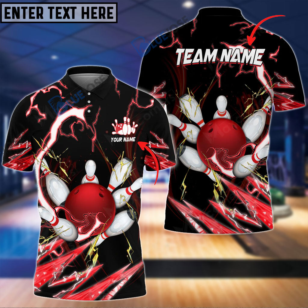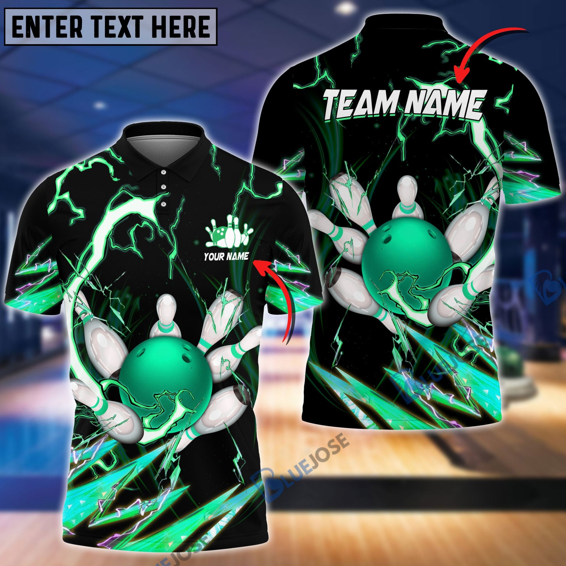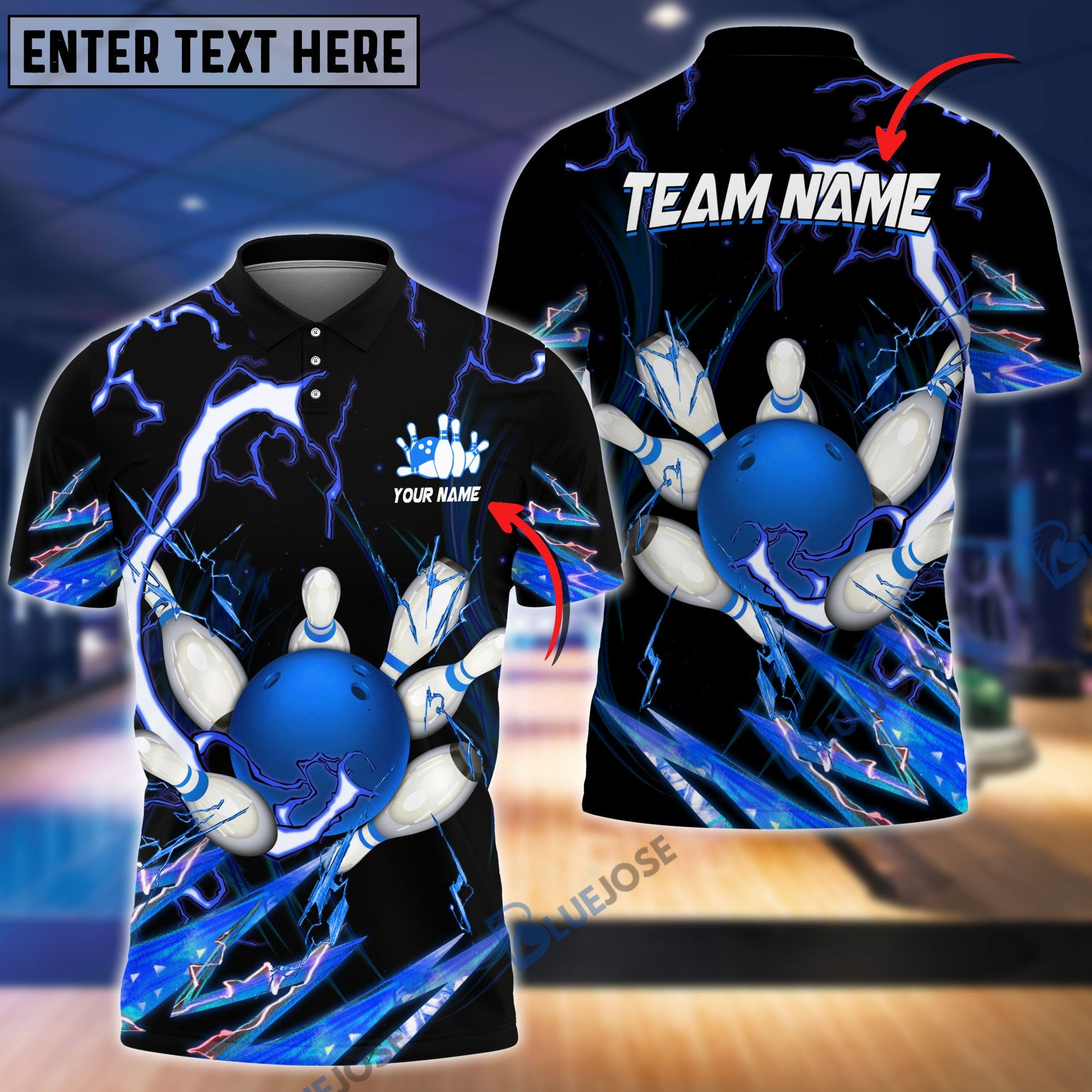 BlueJoses Bowling and Pins Colorful Thunder Power Personalized Name Team Name 3D Shirt (5 Colors), Personalized Shirts For Bowling Players