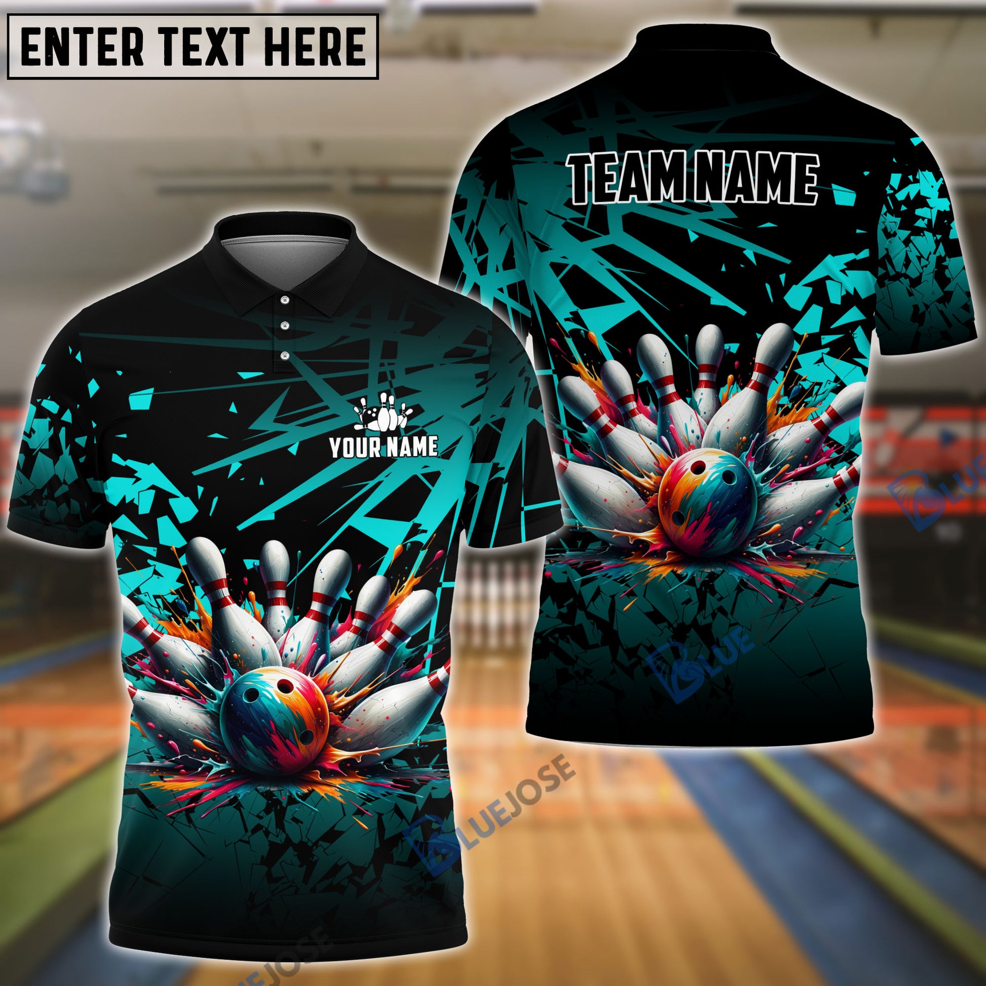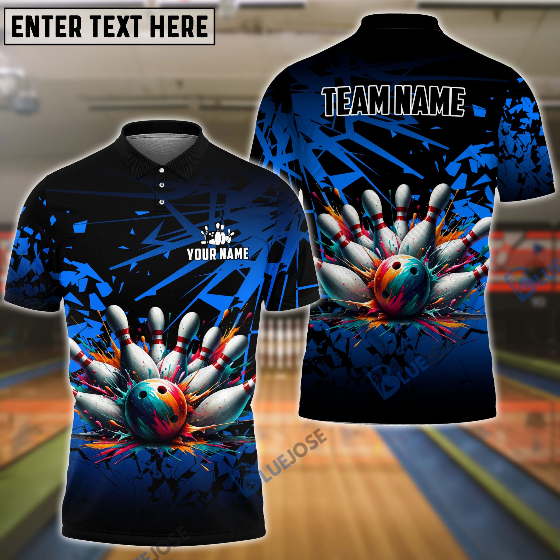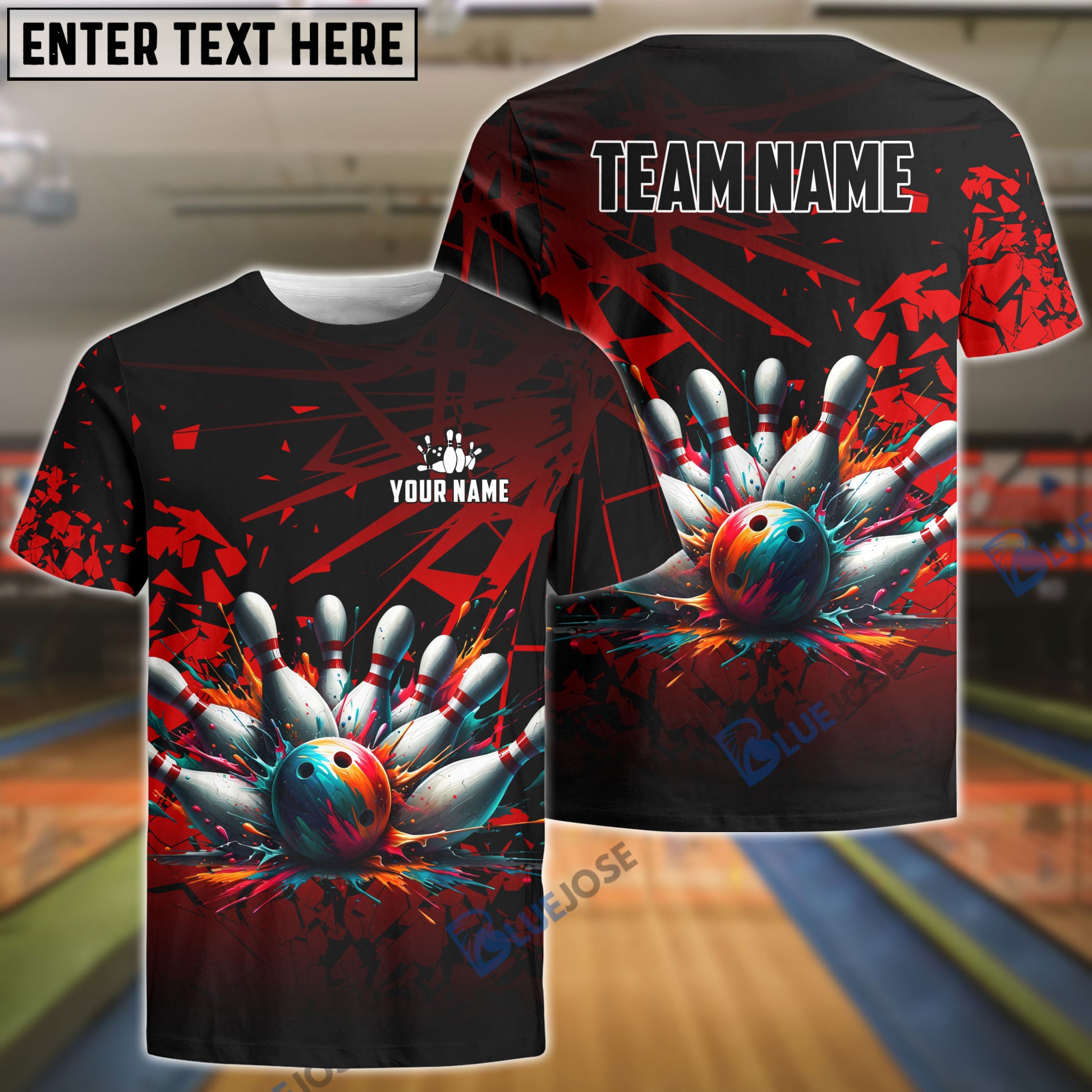BlueJoses Bowling And Pins Diamond Broken Customized Name 3D Shirt (4 Colors)