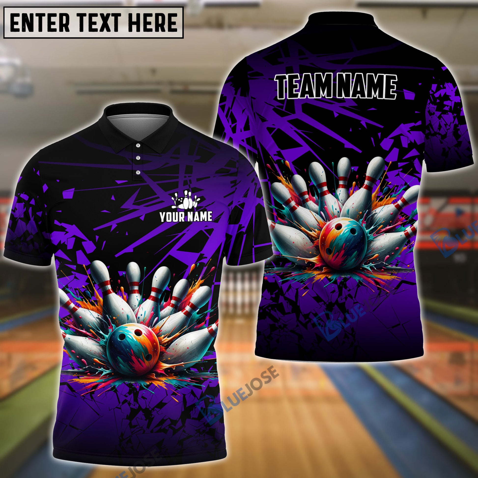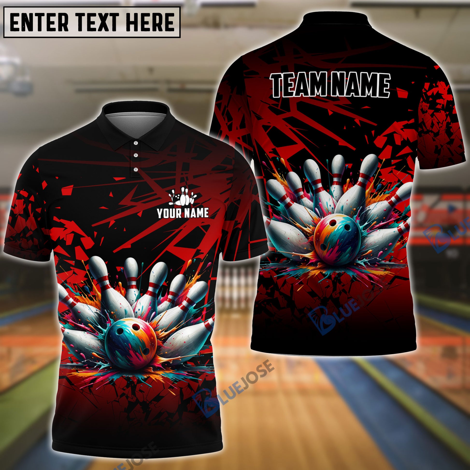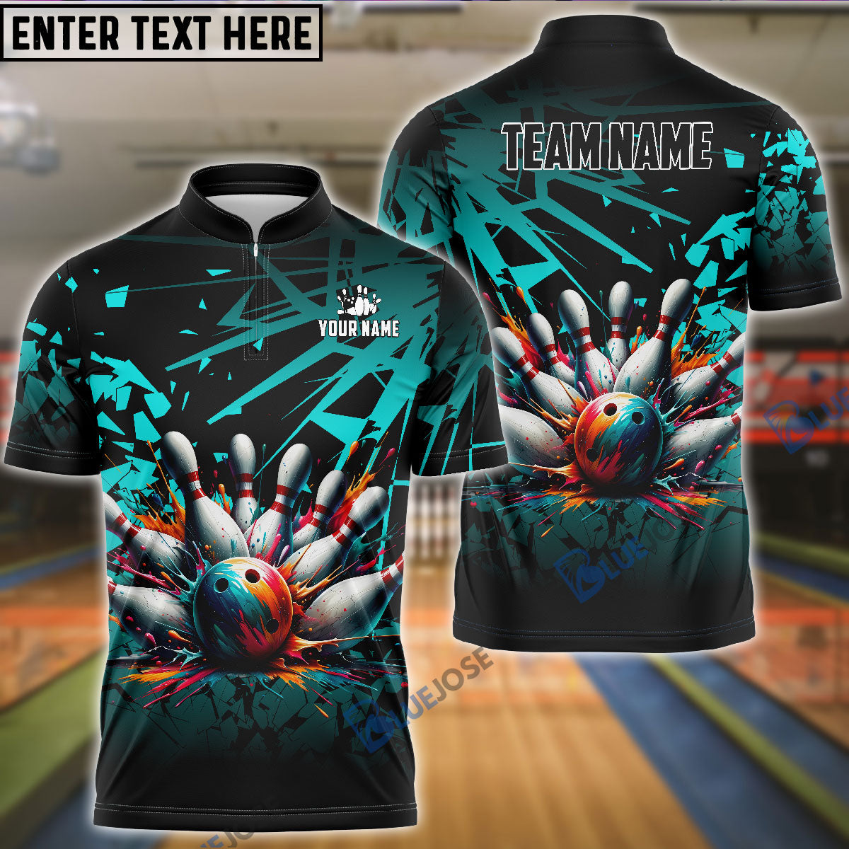 BlueJoses Bowling And Pins Diamond Broken Customized Name 3D Shirt (4 Colors)