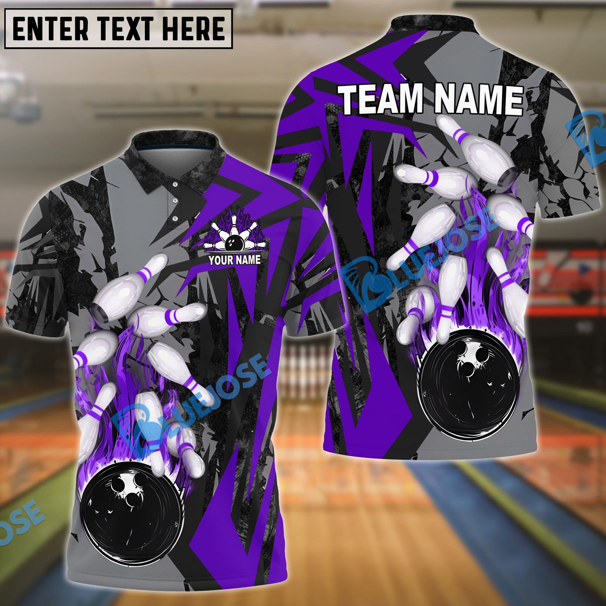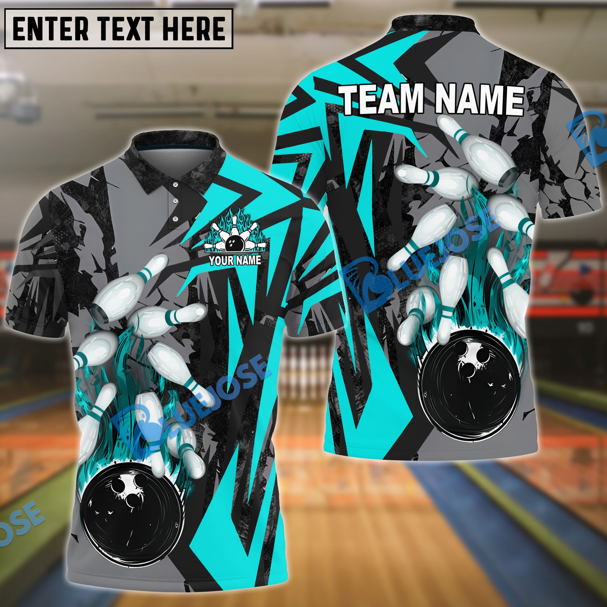 BlueJoses Bowling And Pins Dropping Bomb Multicolor Customized Name 3D Shirt ( 4 Colors )