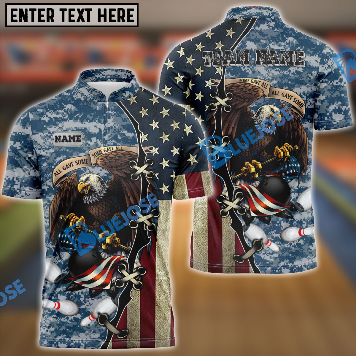BlueJoses Bowling And Pins Eagles Army Multicolor Customized Name 3D Shirt ( 4 Colors )