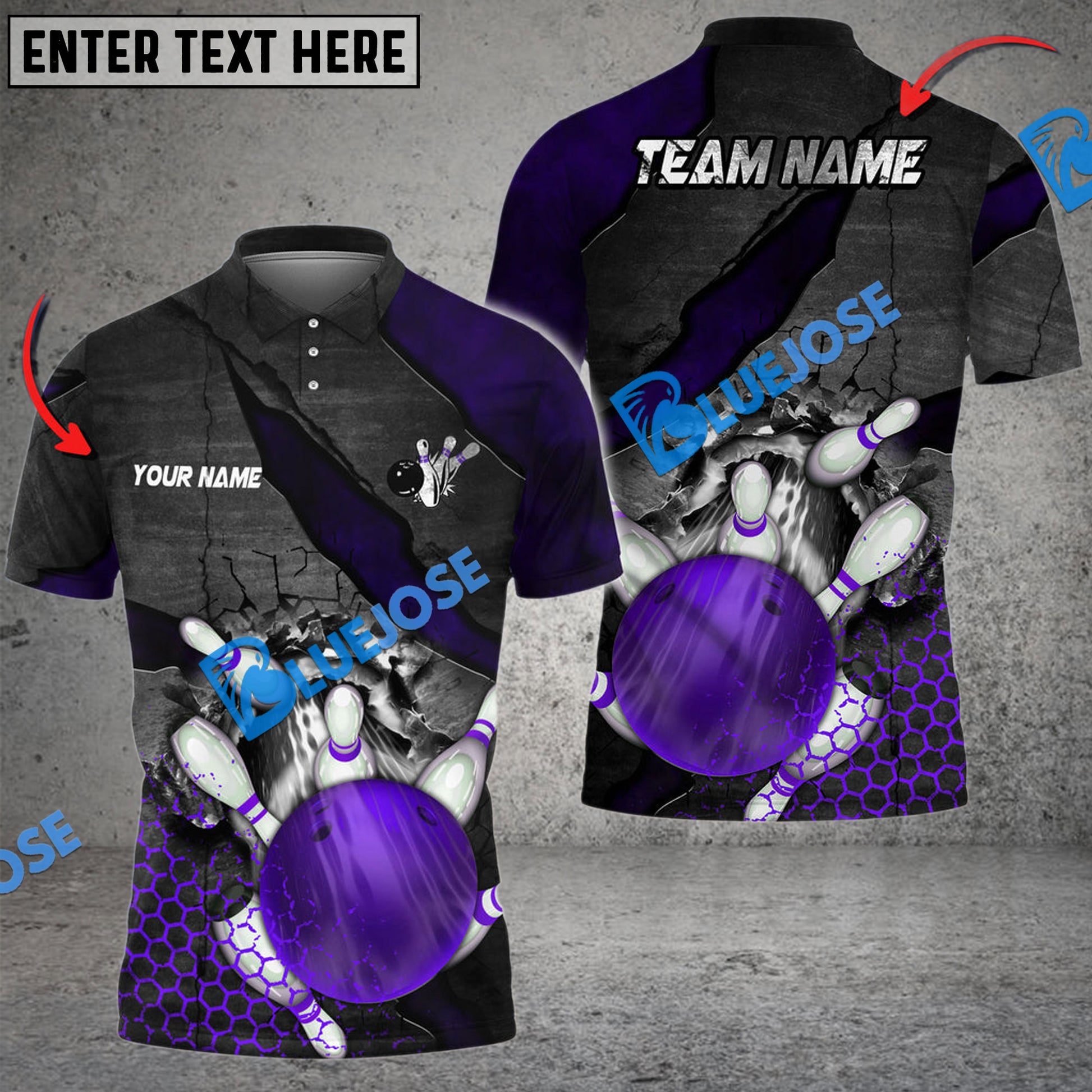 BlueJoses Bowling And Pins Hexagam Crack Multicolor Customized Name 3D Shirt ( 4 Colors )