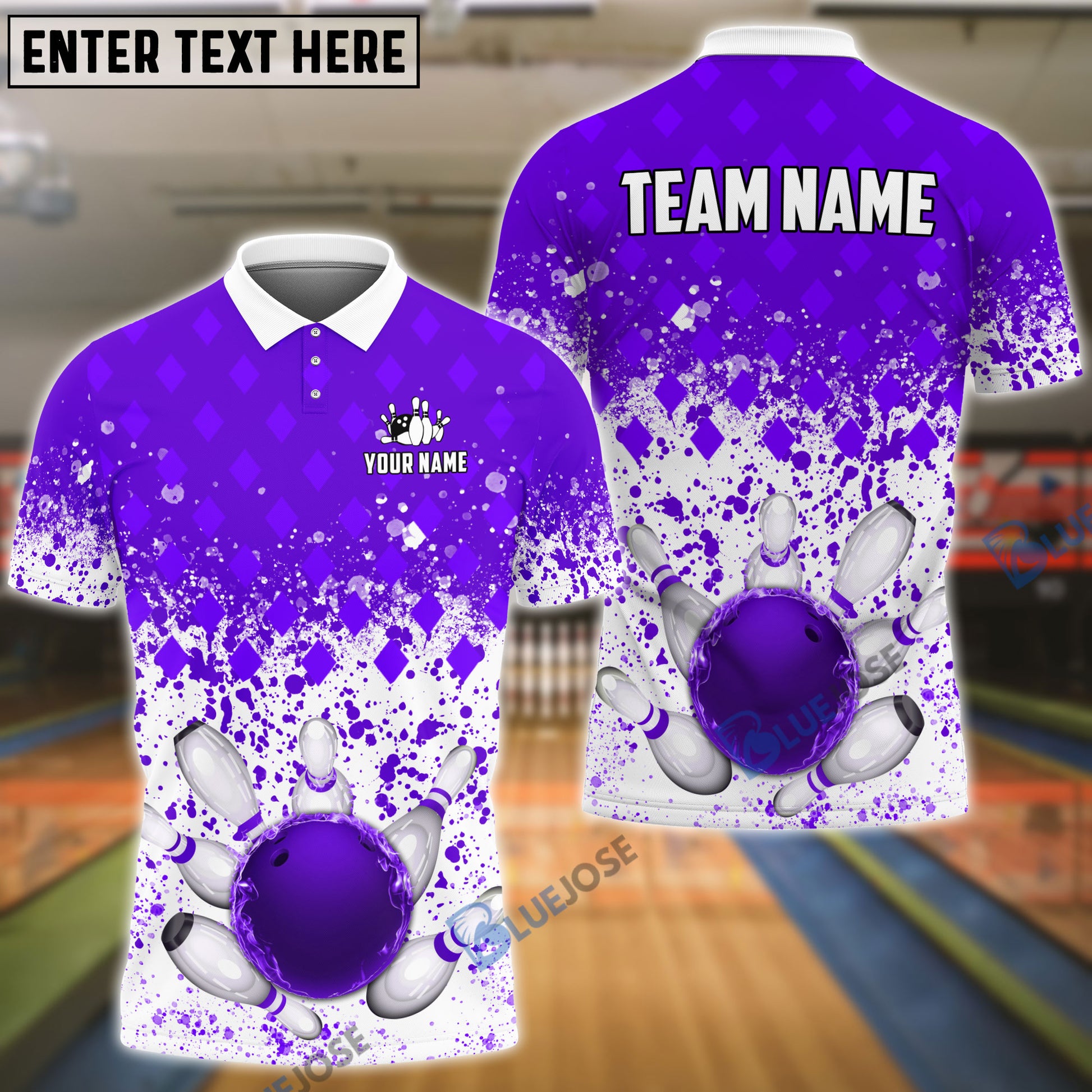 BlueJoses Bowling And Pins Ink Color Pattern Customized Name 3D Shirt (4 Colors)