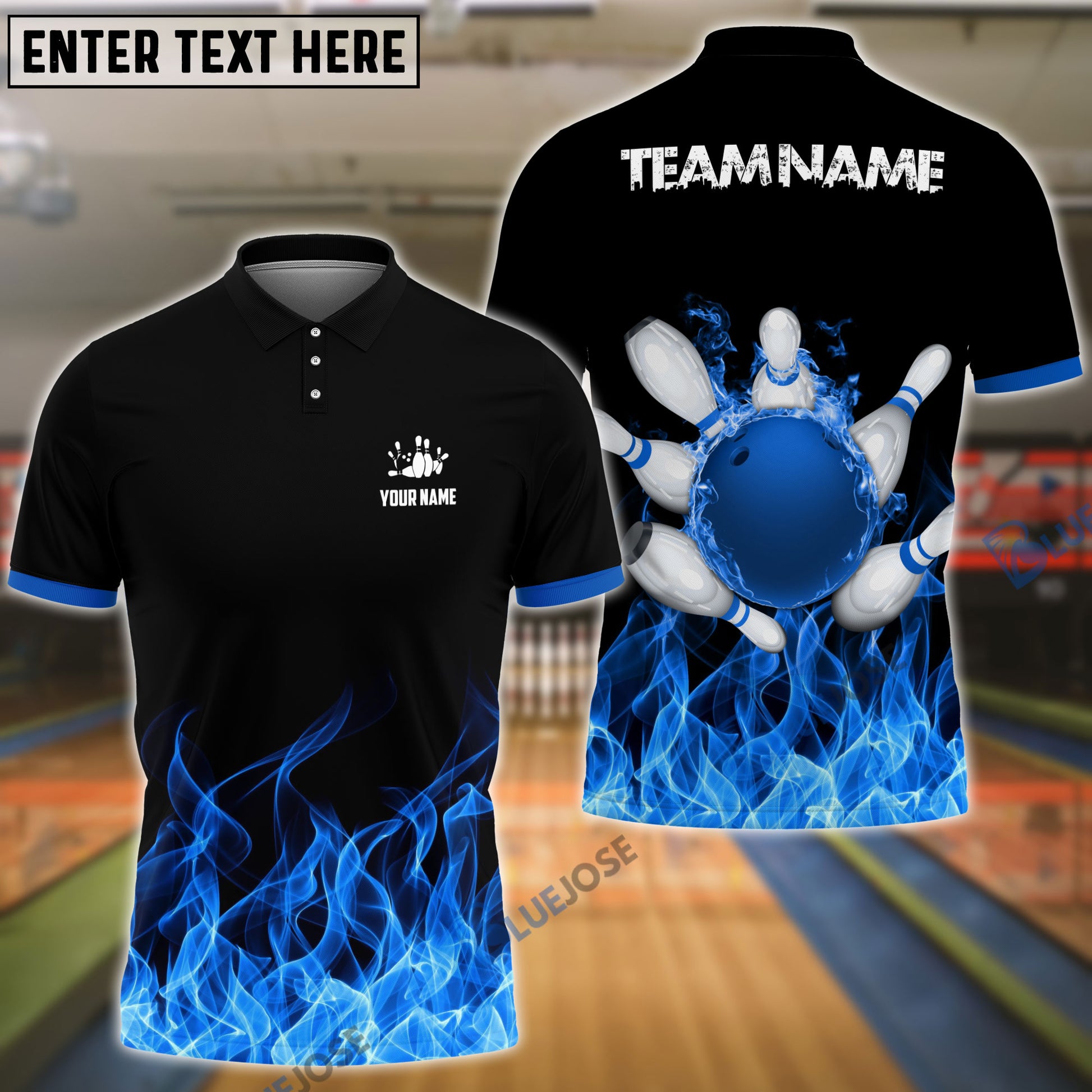 BlueJoses Bowling And Pins Ink Fire Pattern Customized Name 3D Shirt (4 Colors)