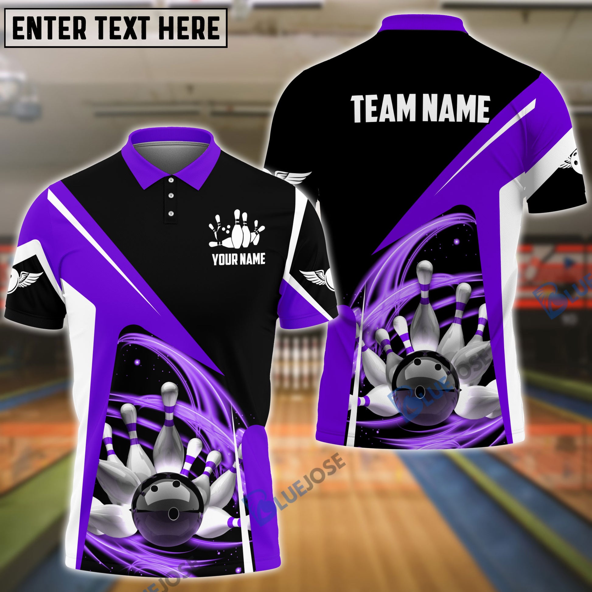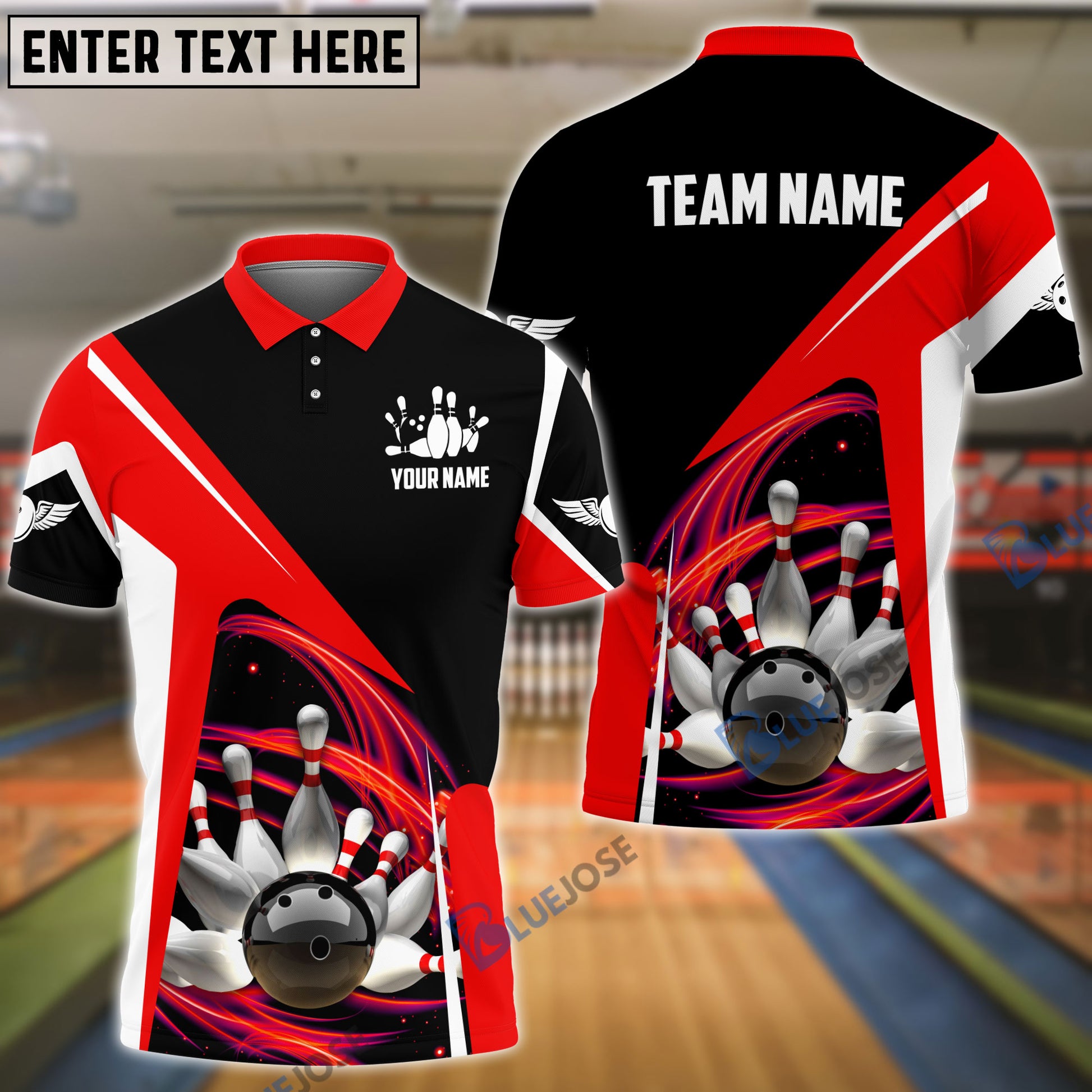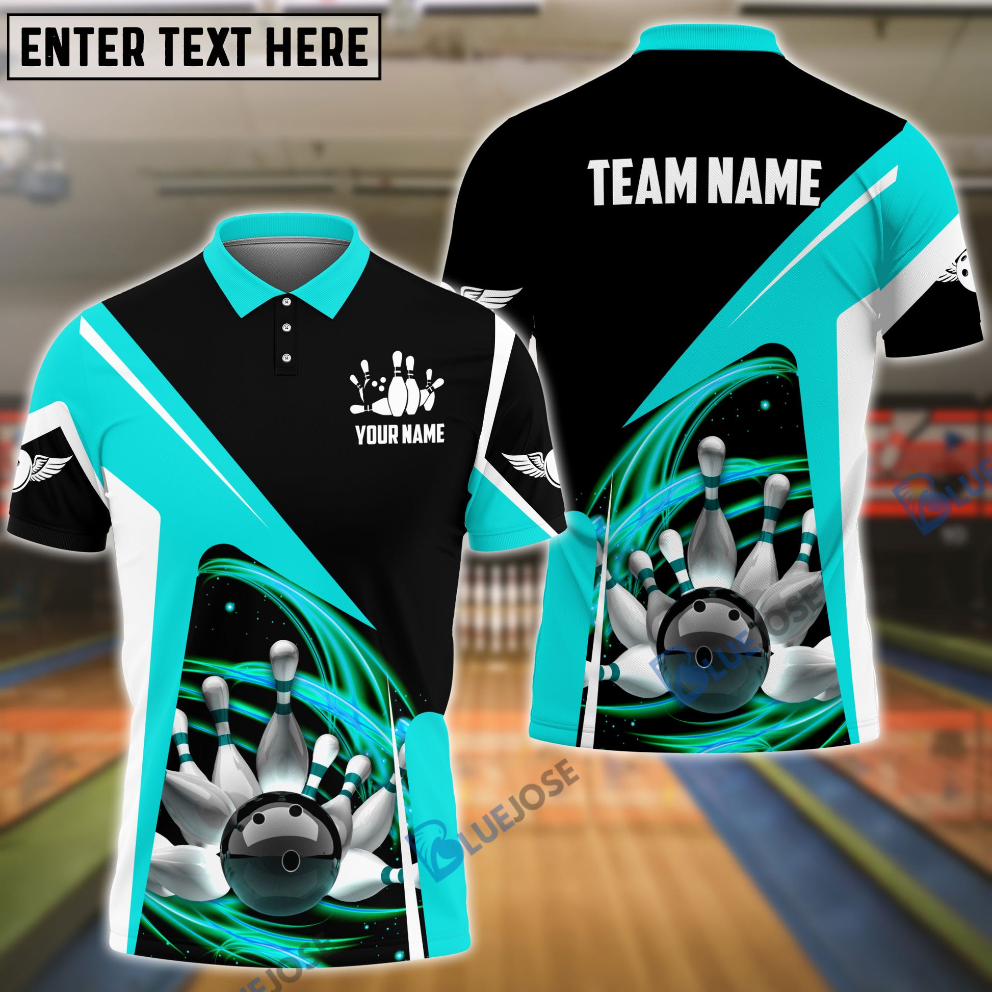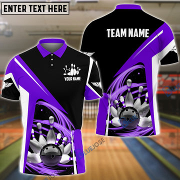 BlueJoses Bowling and Pins Lightning Pattern Personalized Name, Team Name 3D Shirt (4 Colors)