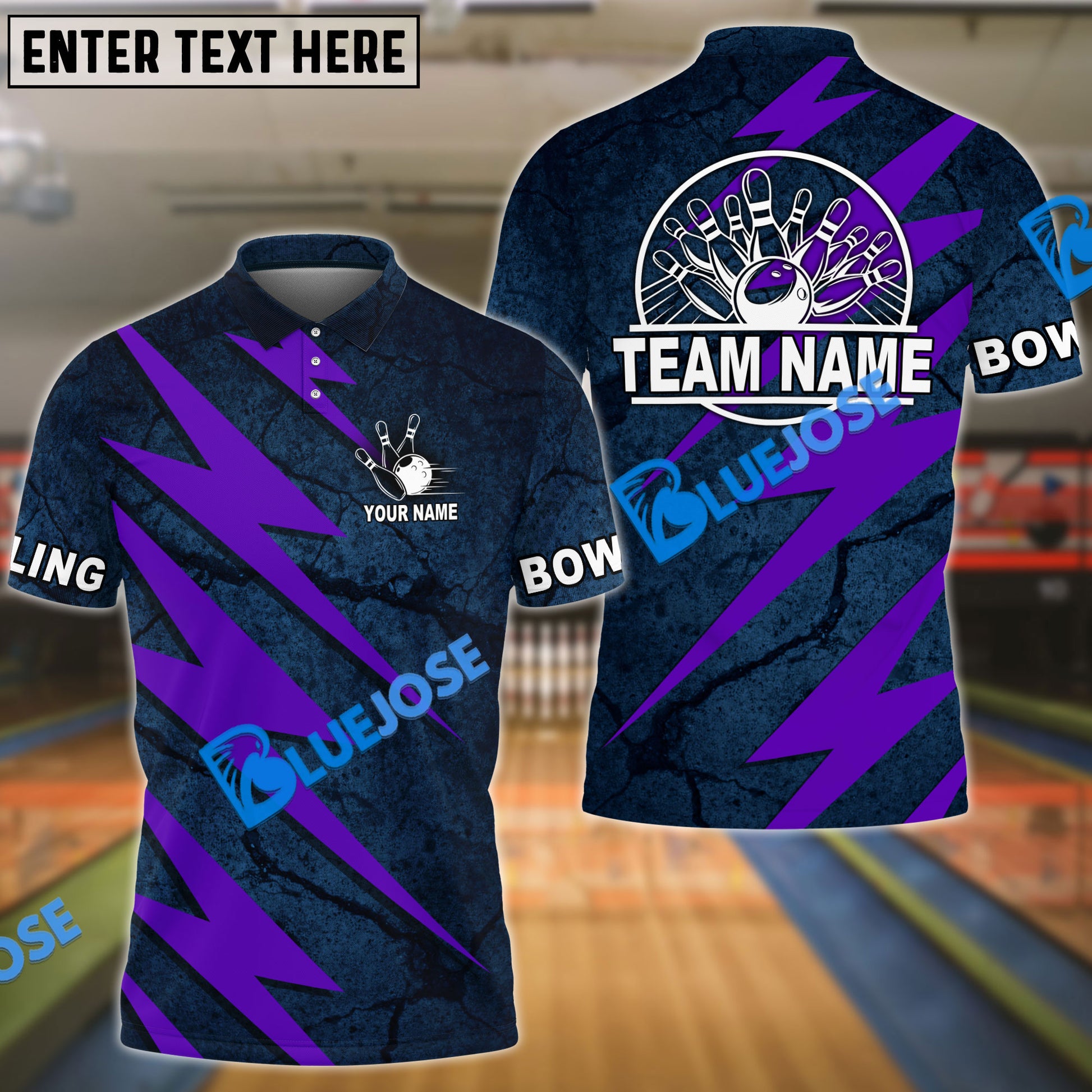 BlueJoses Bowling And Pins Lightning Volt Customized Name 3D Shirt ( 6 Colors)
