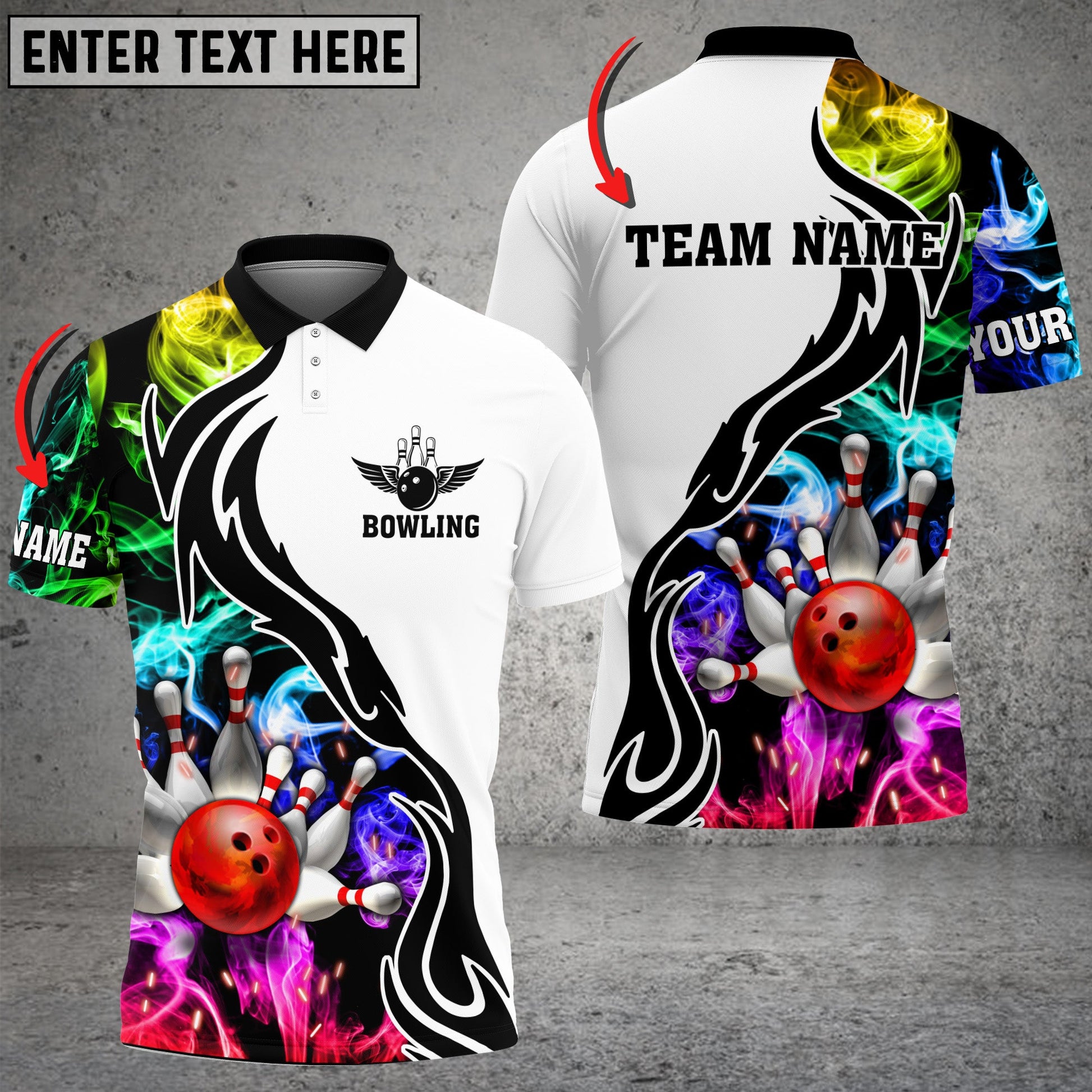 BlueJoses Bowling And Pins Multicoler Smoke Pattern Customized Name 3D Shirt