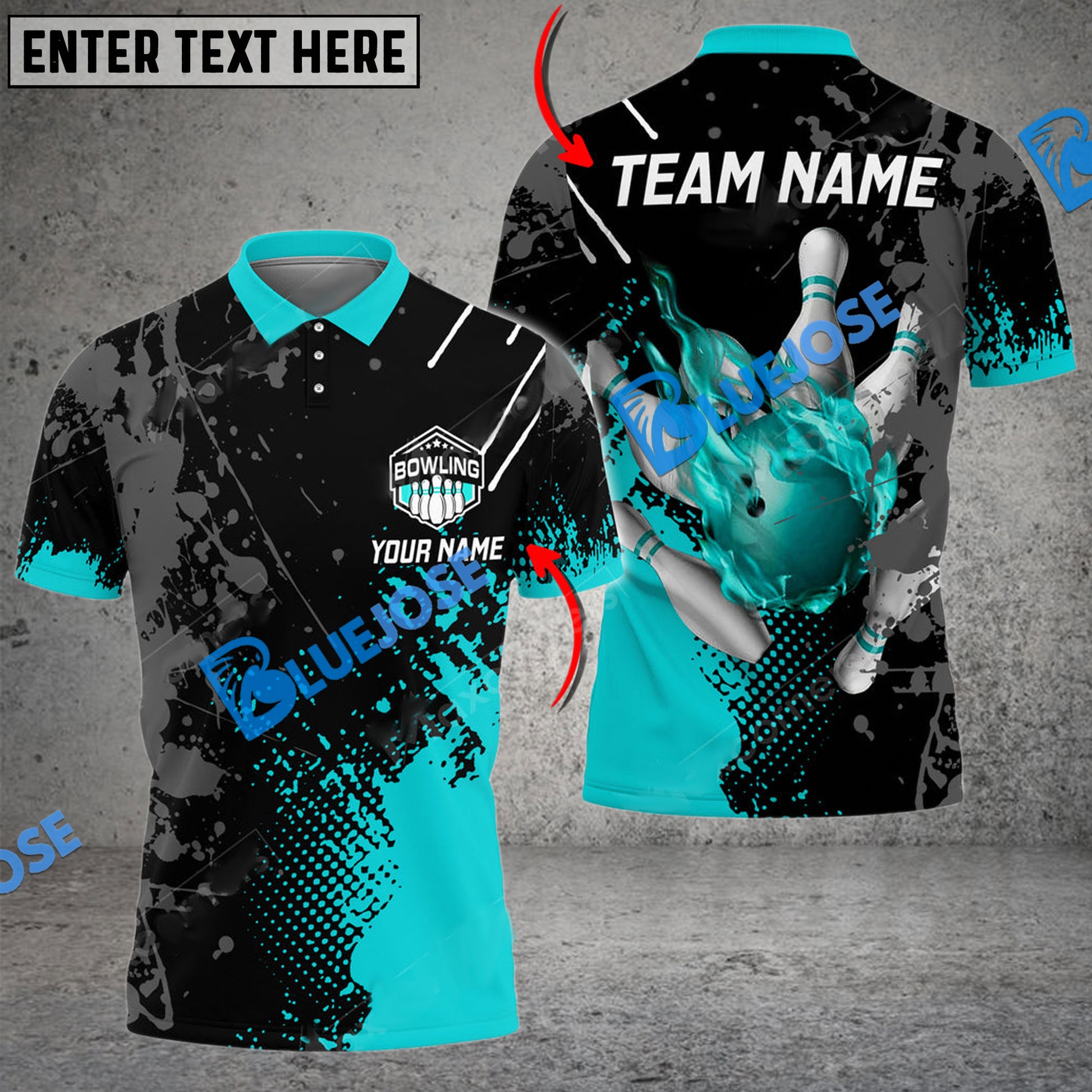 BlueJoses Bowling And Pins Paint Style 2 Multicolor Customized Name 3D Shirt ( 4 Colors )